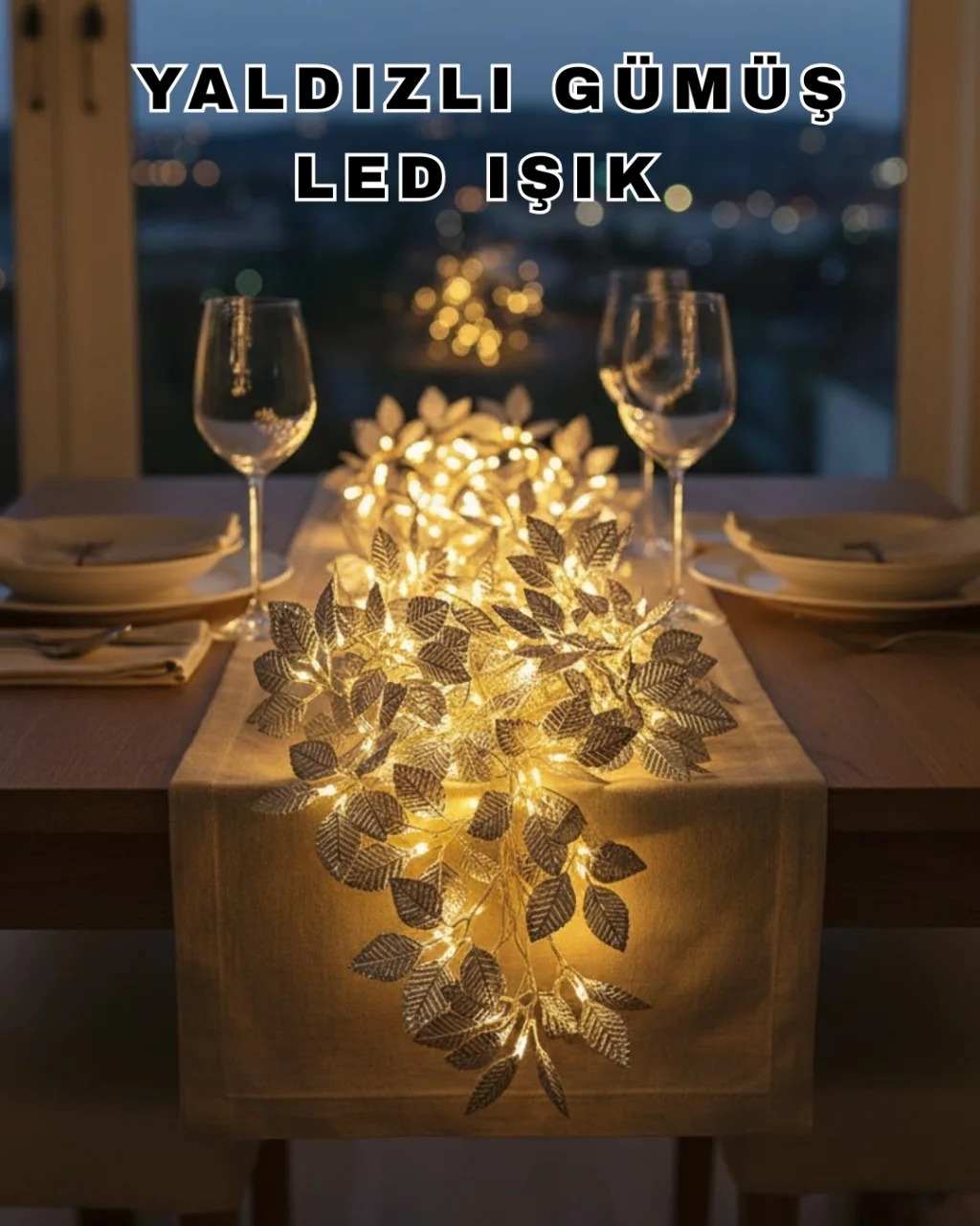 BUĞZ Yaprak Şekilli Gümüş LED Işık Pilli Dekoratif Aydınlatma