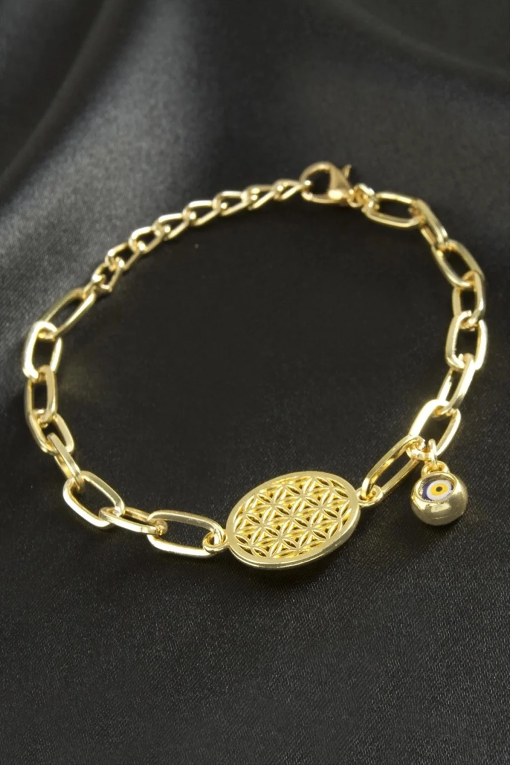 Bileklik; Ürün malzemesi metaldir. Ürün boyu 19 cmdir. Kaplamalıdır. 1 sınıf kaliteli malzeme kulanılmıştır. Kartlıdır. Ürün nazar renkleri asortilidir. Siparişlerinizde karışık olarak gönderilecektir.