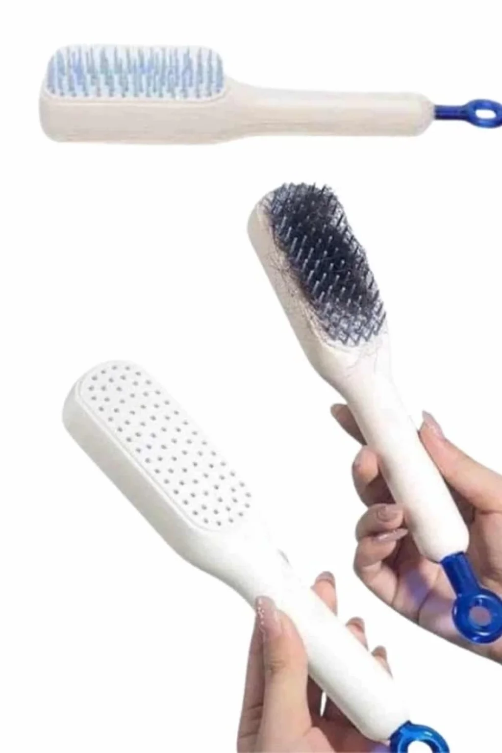Bu yenilikçi saç fırçası, sadece saçlarınızı taramakla kalmaz, aynı zamanda saç derinize bakım yaparak daha canlı ve sağlıklı bir görünüm elde etmenize yardımcı olur. Nazik temizlik etkisi sayesinde saç derisini ölü derilerden arındırır, böylece saç köklerinin nefes almasını sağlar ve saçların daha güçlü uzamasını destekler. Anti-statik teknolojisi ile saçlardaki elektriklenmeyi önleyerek daha düzgün ve ipeksi bir doku kazandırır, bu da tarama işlemini çok daha kolay ve konforlu hale getirir.Kendi kendini temizleyebilen yapısıyla hijyen konusunda fark yaratır; her kullanım sonrası fırçanızı zahmetsizce temizleyebilir, uzun süre ilk günkü temizlik hissiyle kullanabilirsiniz. Ergonomik ve geniş yapısı sayesinde saç derisiyle daha fazla temas ederek hem rahatlatıcı bir masaj etkisi yaratır hem de daha hızlı ve etkili sonuçlar sunar. Hem günlük kullanıma hem de özel saç bakım rutinlerine mükemmel uyum sağlayan bu fırça, her saç tipine hitap eden fonksiyonel ve estetik bir çözümdür.