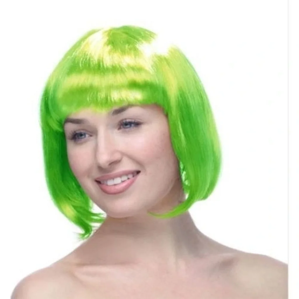 Yeşil renk parti peruğu ile partilerin en dikkat çekicisi siz olabilirsiniz.Astarlı iç yapısı sayesinde kullanımı kolaydır. Kafanıza takarken saçınızda bir bozulma ve yıpratma yapmaz30 cm boyunda olup sentetik malzemeden imal edilmiştir.Ürünün orijinal yapısı yetişkinler içindir. Çocuklar için kullanımlarda , içindeki astarı daraltmanız yeterlidir.Kullanmadan önce peruğu sallayınız.