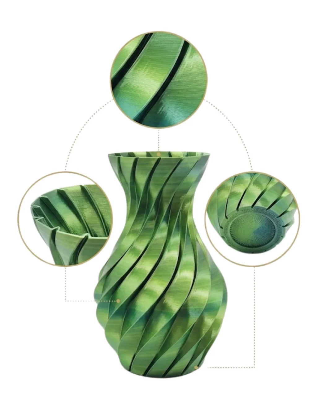 Şıklığı ve modern tasarımı bir araya getiren 3D spiral yeşil vazo, dekorasyonunda fark yaratmak isteyenler için özel olarak üretilmiştir. Kıvrımlı ve hareketli yüzeyi sayesinde ışığı farklı açılardan yansıtarak bulunduğu ortama derinlik ve canlılık katar. Yeşilin doğal tonları, mekâna sakinlik ve doğallık hissi kazandırır.Fonksiyonel kullanım sunan bu vazo, hem çiçeklerle hem de tek başına dekoratif obje olarak kullanılabilir. Kurutulmuş çiçekler, pampas veya yapay çiçeklerle kombinlendiğinde çok daha etkileyici bir görünüm oluşturur. Modern ev dekorasyonu, ofis tasarımı ve minimalist yaşam alanları için mükemmel bir tamamlayıcıdır.Dayanıklı yapısı sayesinde uzun ömürlü kullanım sağlar. Şık görünümü ile aynı zamanda sevdiklerinize hediye edebileceğiniz zarif ve kullanışlı bir alternatiftir.Ürün Markası: BUĞZ