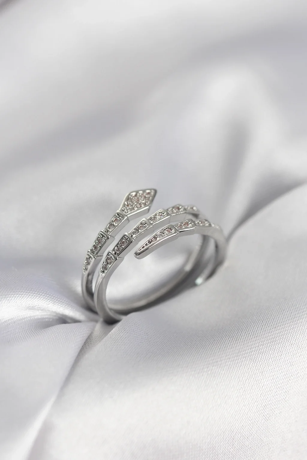 BUĞZ Yılan Model Gümüş Renk Zirkon Taşlı Kadın Yüzük