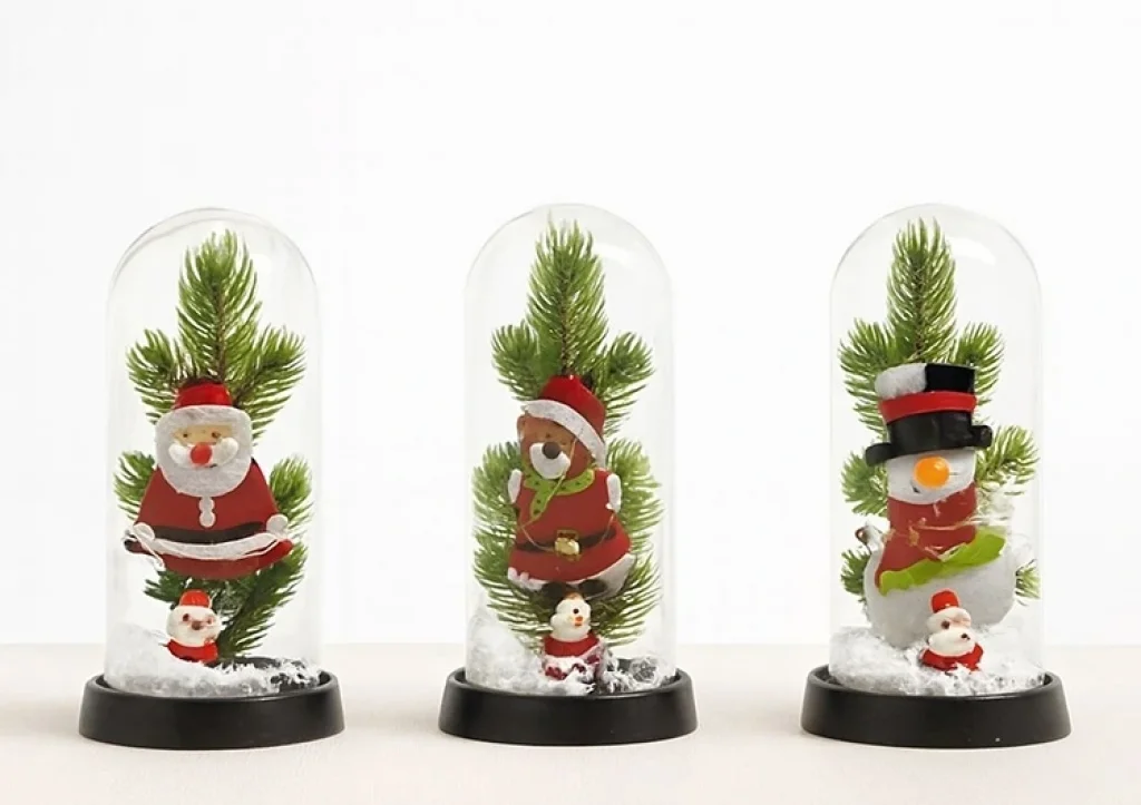 Yılbaşı Temalı Işıklı Dekoratif Cam Fanus Alk5075 Ürün Ölçüleri 19*9 Cm