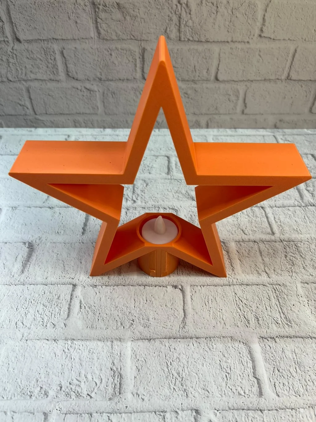 Dekoratif turuncu yıldız mumluk, loş aydınlatma sevenler için estetik ve işlevsel bir ev aksesuarıdır. Raf üstü, masa veya sehpa üzerinde kullanıldığında dekorasyona derinlik ve karakter kazandırır. Mum ışığının yumuşak yansımasıyla salonlarda cozy bir ambiyans oluşturur ve mekâna sıcak bir dokunuş ekler.Ürün Markası: Lisinya