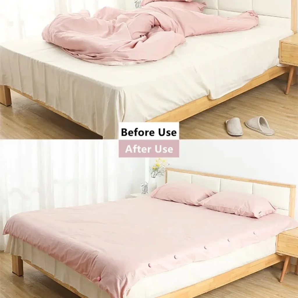 Yorgan Kılıfı ve Çarşaf Tutucu Sabitleyici, yatağınızdaki yorgan kılıfı ve çarşafları sabitlemek için etkili bir çözümdür. Bu ürün sayesinde yatağınızın düzenini koruyabilir ve yorgan kılıfı ile çarşafların kaymasını önleyebilirsiniz.