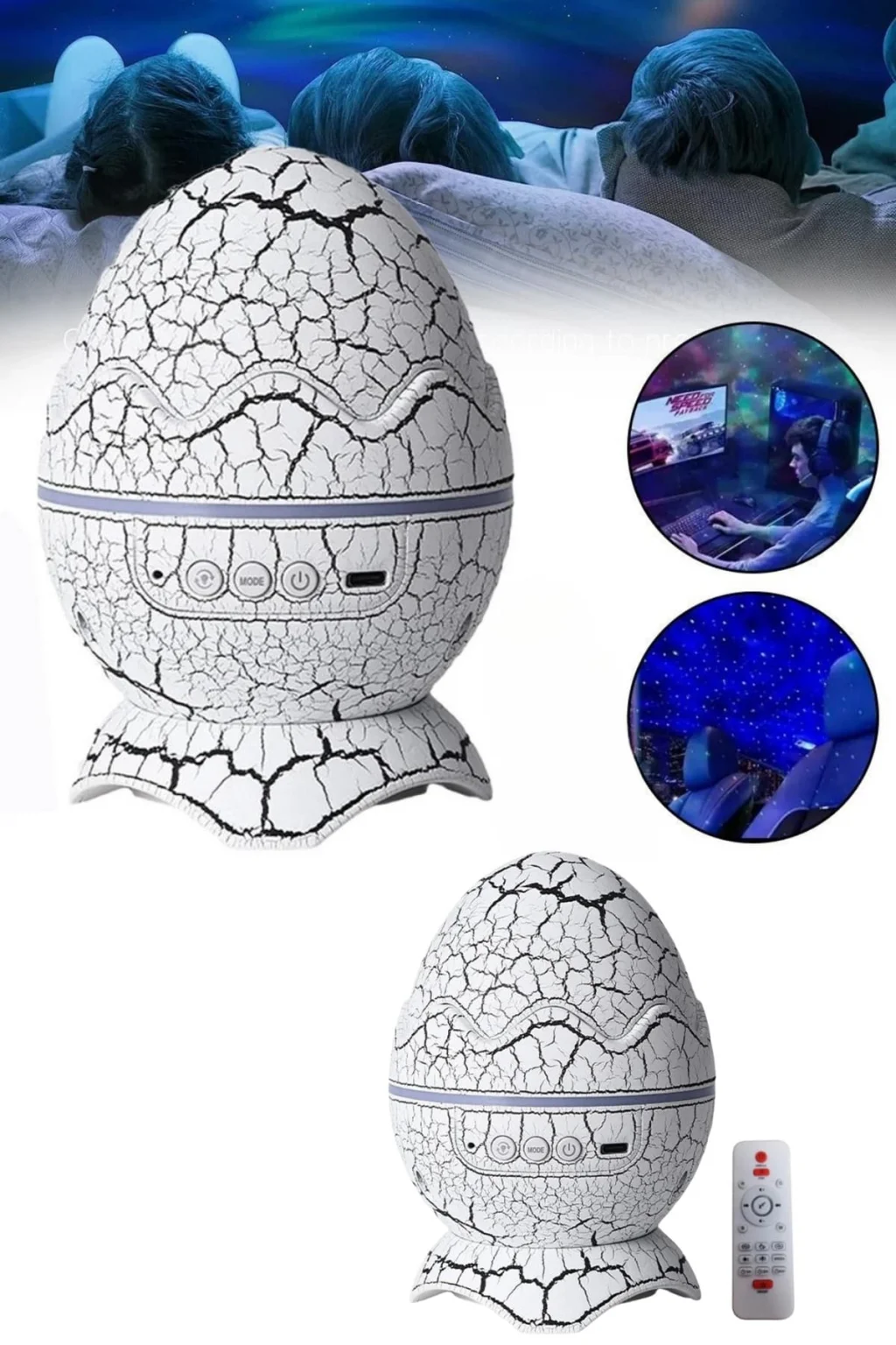 Evdeki her ortamı büyülü bir atmosfere dönüştürmek artık çok kolay! Dinazor Yumurtası tasarımı, odanızı kocaman bir uzay alanına çevirebilmenizi sağlar. Yıldızlarla dolu bir gökyüzüne bakarak, hayal gücünüzü özgür bırakabilirsiniz. Ürünün şık ve ilgi çekici tasarımı, sadece işlevsel değil, aynı zamanda evinize görsel olarak da zarif bir dokunuş ekler. Sadece bir düğmeye basarak, dönen projektörün sağladığı 7 farklı sis türü ve farklı hız ve parlaklık ayarlarıyla ışık gösterisinin keyfini çıkarabilirsiniz.Ürün Markası: BUĞZ