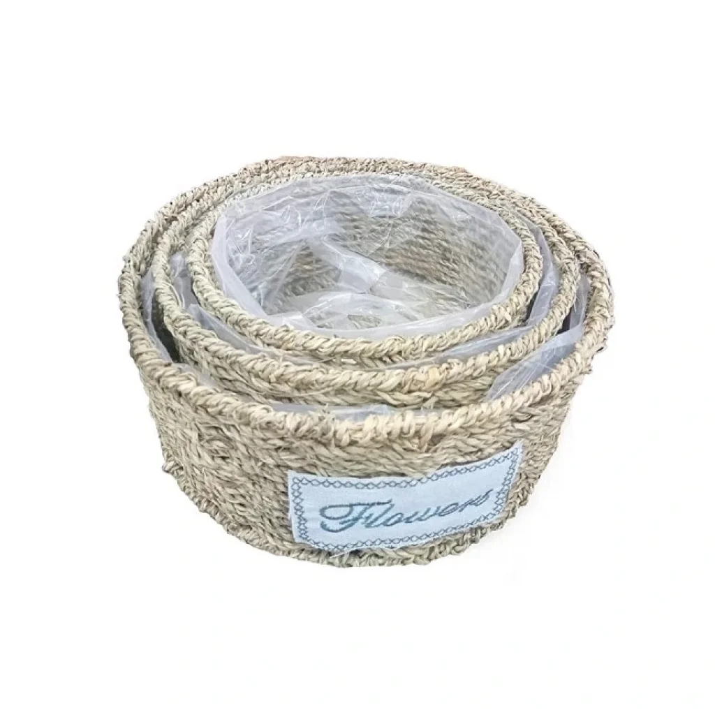BUĞZ Yuvarlak Doğal Hasır Saksı Seti - 3'lü