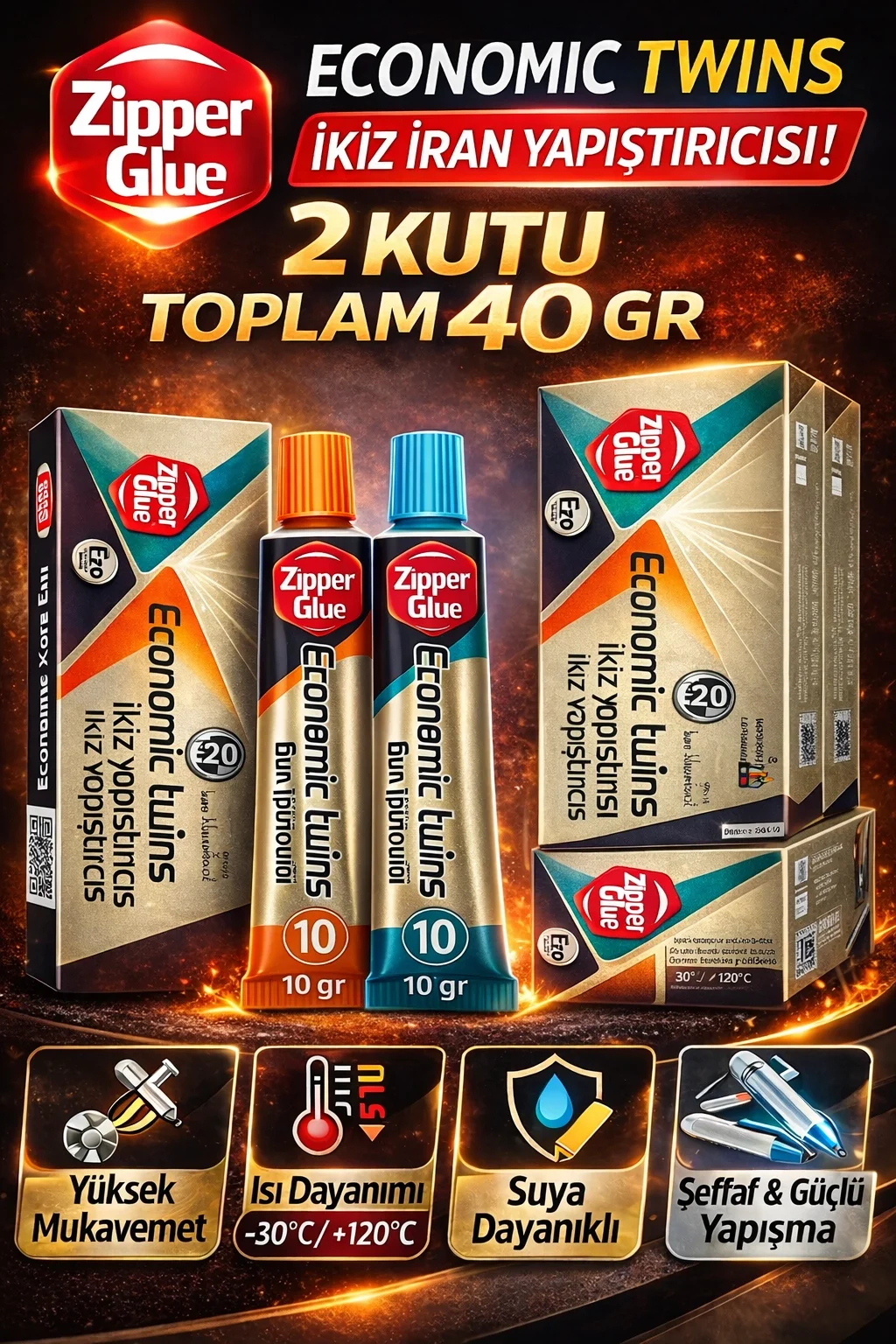 zipper glue, ikiz iran yapıştırıcısı, 2 kutu yapıştırıcı, 40 gr yapıştırıcı, a b epoksi yapıştırıcı, çift tüplü epoksi, güçlü yapıştırıcı, metal yapıştırıcı, plastik yapıştırıcı, cam yapıştırıcı, seramik yapıştırıcı, ahşap yapıştırıcı, ısıya dayanıklı yapıştırıcı, suya dayanıklı epoksi, endüstriyel yapıştırıcı, hızlı kuruyan yapıştırıcı, tamir yapıştırıcısı