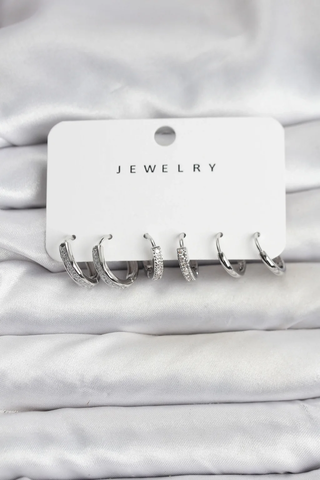 BUĞZ Zirkon Taşlı Gümüş Renk Pirinç Kadın Küpe Seti