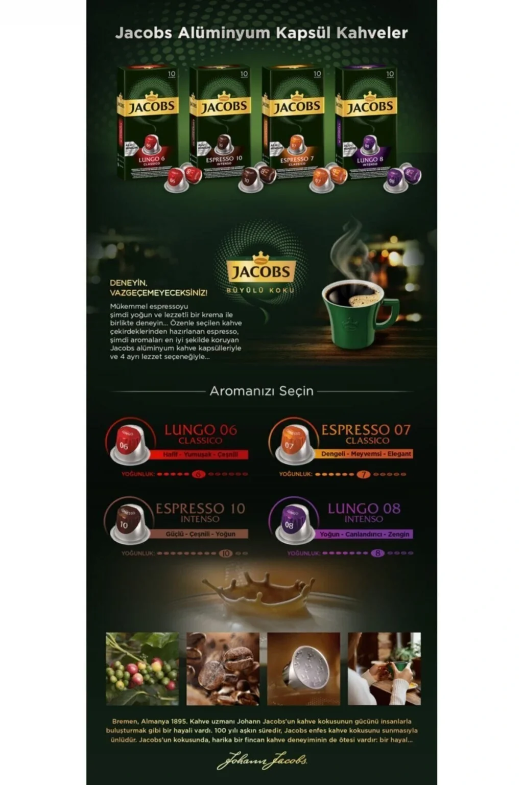Hem işyerinizde hem de evinizde kahve keyfini mükemmel bir şekilde hissedeceğiniz jacobs espresso 10 ıntenso kapsül kahve 10'lu sizlerle! Güçlü, çeşnili ve yoğun yapısı ile espresso severler için vazgeçilmez bir tat olacak.; ; Özenle seçilen kahve çekirdeklerinden hazırlanmıştır.; ; Alüminyum kahve kapsülleri sayesinde aromasını en iyi şekilde korur.