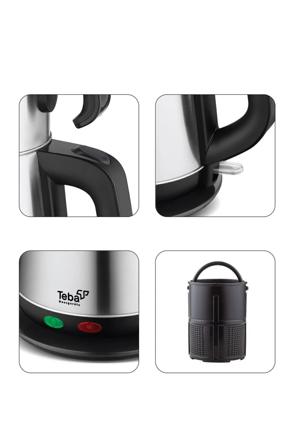 1500W, 1.8 Lt su kapasitesi, 360 Derece dönebilen hareketli taban, Paslanmaz gizli rezistans, Paslanmaz çelik gövde, Kablo sarma haznesi, Susuz çalışmayı önleyen emniyet sistemi, Işıklı güç göstergesi, Geniş çay filtresi, Otomatik sıcak tutma fonksiyonu, Açma kapama düğmesi, Estetik tasarım