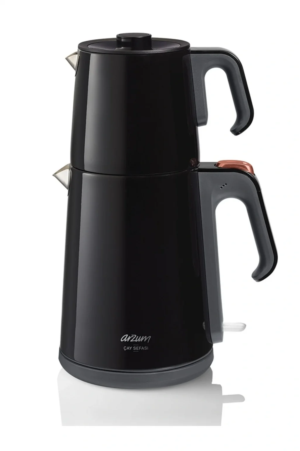 Elektrikli çaydanlık, su ısındığı zaman kapanma fonksiyonu ile elektrik kullanımından tasarruf etmenizi sağlar. Aynı zamanda susuz çalışmayı önleyen sistemiyle güvenli kullanım sunar.; Paslanmaya ve darbelere karşı dayanıklı bir tasarıma sahip olan çelik çay makinesi, uzun süreli kullanıma son derece uygundur. Paslanmaz çelik iç hazne ile lezzetli çaylar demleyebilirsiniz. ; Rose gold detaylara sahip olan siyah çaycı aynı zamanda ışıklı gösterge ile kullanımda kolaylık sağlar. Ergonomik tasarımı ve lezzetli demleme performansı ile çay zevkinizi üst seviyeye taşır.; Kolay temizlenebilir dış gövdesi ile metal çaycı, hijyenik bir kullanım sunabilir. ; 1,8 litre su ısıtıcı ve 1,2 litre demlik hazneye sahip Arzum AR3080 çay sefası çay makinesi, fazla miktarda çay demleme imkanı sunar. Bu özelliği sayesinde fazla sayıda fincan çay demleyebilir, kalabalık ortamlarda kullanım sağlayabilirsiniz. ; Arzum AR3080 çay sefası, çift kullanımlı kapağı ile hem su ısıtıcısı hem de çay makinesi olarak kullanılabilir. ; Arzum AR3080 çay sefası 1650 W çelik çay makinesi, yüksek elektrik gücü ile çay demleme işlemini hızlandırarak zaman tasarrufu sağlar. Su kaynadığı zaman güç kullanımını düşürerek suyun ısısını korumaya yardımcı olur. ; 360° dönebilen Arzum AR3080 çay makinesi, kablo saklama haznesi ile alandan tasarruf ederek elektrikli çaydanlığınızı kullanabilirsiniz.;