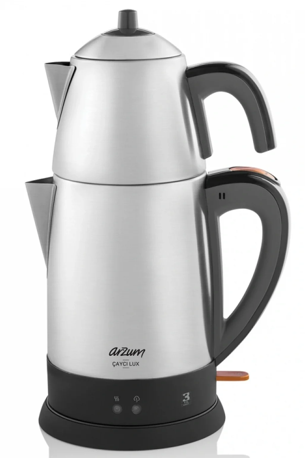 3 yıl resmi distribütör garantisi ile güvenle kullanım sunar, olası teknik sorunlarda endişe etmenize gerek kalmaz; Gizli rezistans özelliği sayesinde temizliği kolaydır ve kireçlenmeyi önler, uzun ömürlü kullanım sağlar; Paslanmaz çelik materyali ile dayanıklılık ve şık bir görünüm bir arada sunar, mutfak dekorasyonunuza modern bir dokunuş katar; Metal demlik kapasitesi 0; 7 litre olup, demlik içindeki çayınızın sıcak kalmasını sağlar ve servis kolaylığı sunar; Otomatik kapanma fonksiyonu ile enerji tasarrufu yapmanızı sağlar ve güvenliğinizi artırır; su kaynadığında otomatik olarak kapanır;