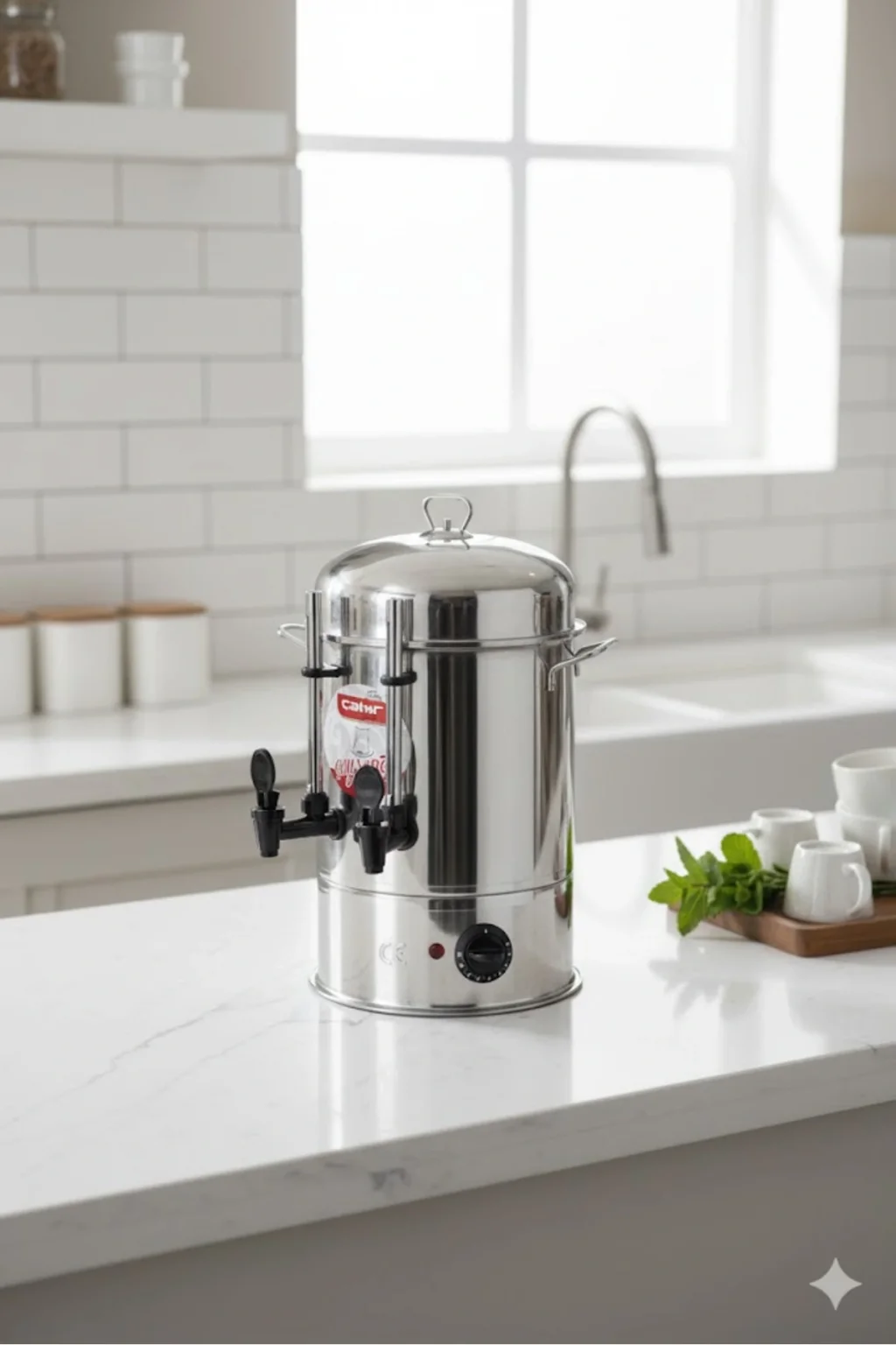 Otomatik kapanma özelliği sayesinde enerji tasarrufu sağlar ve güvenliğinizi artırır; Dayanıklı metal demlik yapısı ile uzun ömürlü kullanım sunar; 2 yıl garanti süresi ile satın alma sonrası da güven verir; Yüksek kaliteli çelik materyal kullanımı, ürünün estetik görünümüne katkıda bulunurken dayanıklılığı artırır; Semaver modeli, geleneksel çay demleme yöntemlerini modern teknolojiyle buluşturarak nostaljik bir deneyim sunar;
