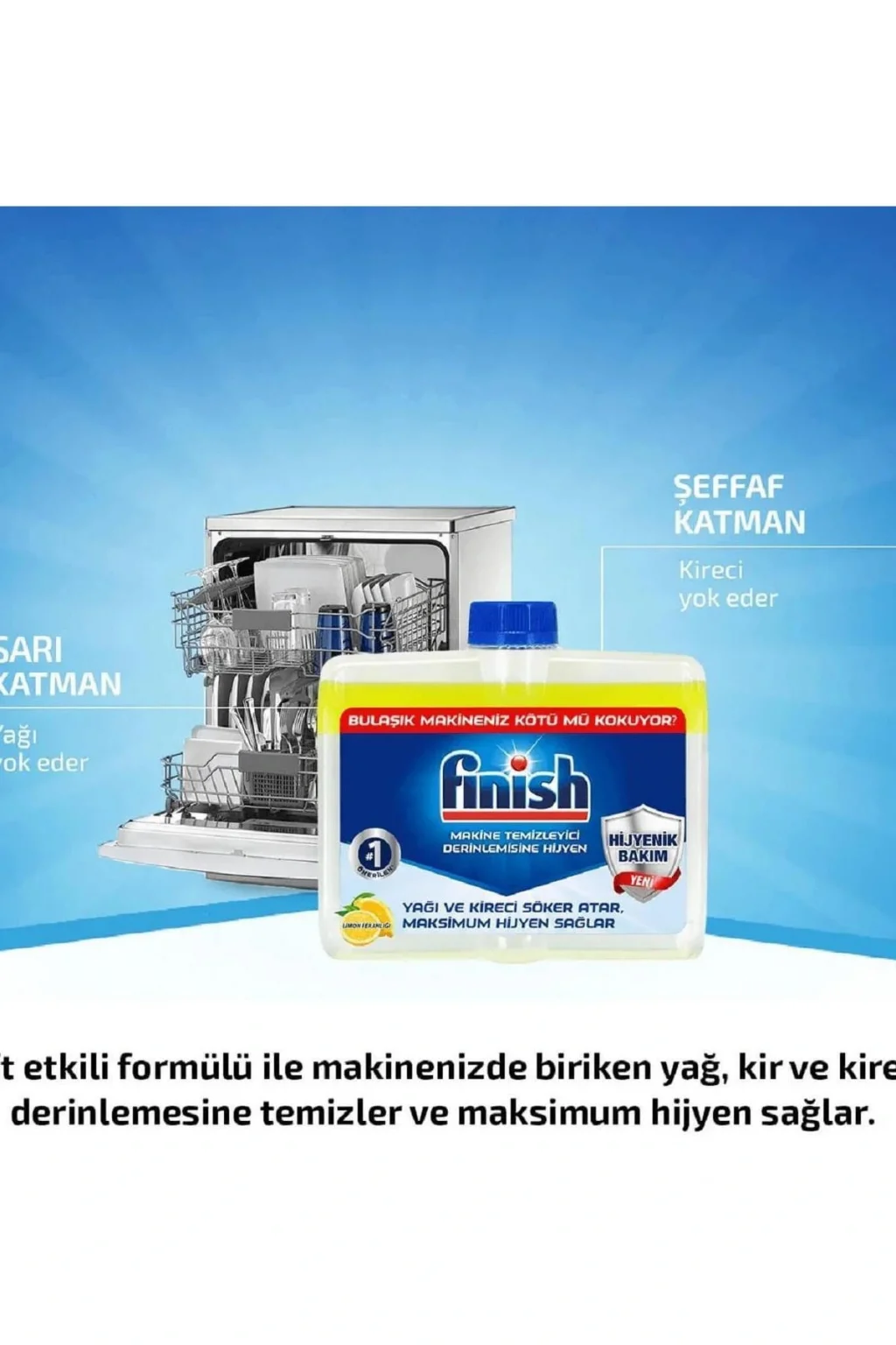 • finish çift etkili makine temizleyici limon, daha temiz makinelerle daha hijyenik bulaşıklar yıkamanız için geliştirilmiş, bulaşık makinenize derinlemesine temizlik ve bakım sağlayan çok etkili bir üründür. • bulaşık makinenizin; filtre, su gideri, pervane, su boruları gibi göze gözükmeyen yerlerinde oluşan kir birikintilerinden kaynaklı performans eksikliği olabiliyor. • bu tür durumlarda finish çift etkili temizleyici limon ürünü kullanmak hem makinenizin gizli kısımlarını temizliyor hem de limon ferahlığı sağlıyor. • bulaşık makinenizin kullanım ömrünü uzatmak ve onu ilk günkü gücüyle kullanabilmeniz için finish çift etkili makine temizleyicisi limon, size ihtiyacınız olan temizliği sunuyor.