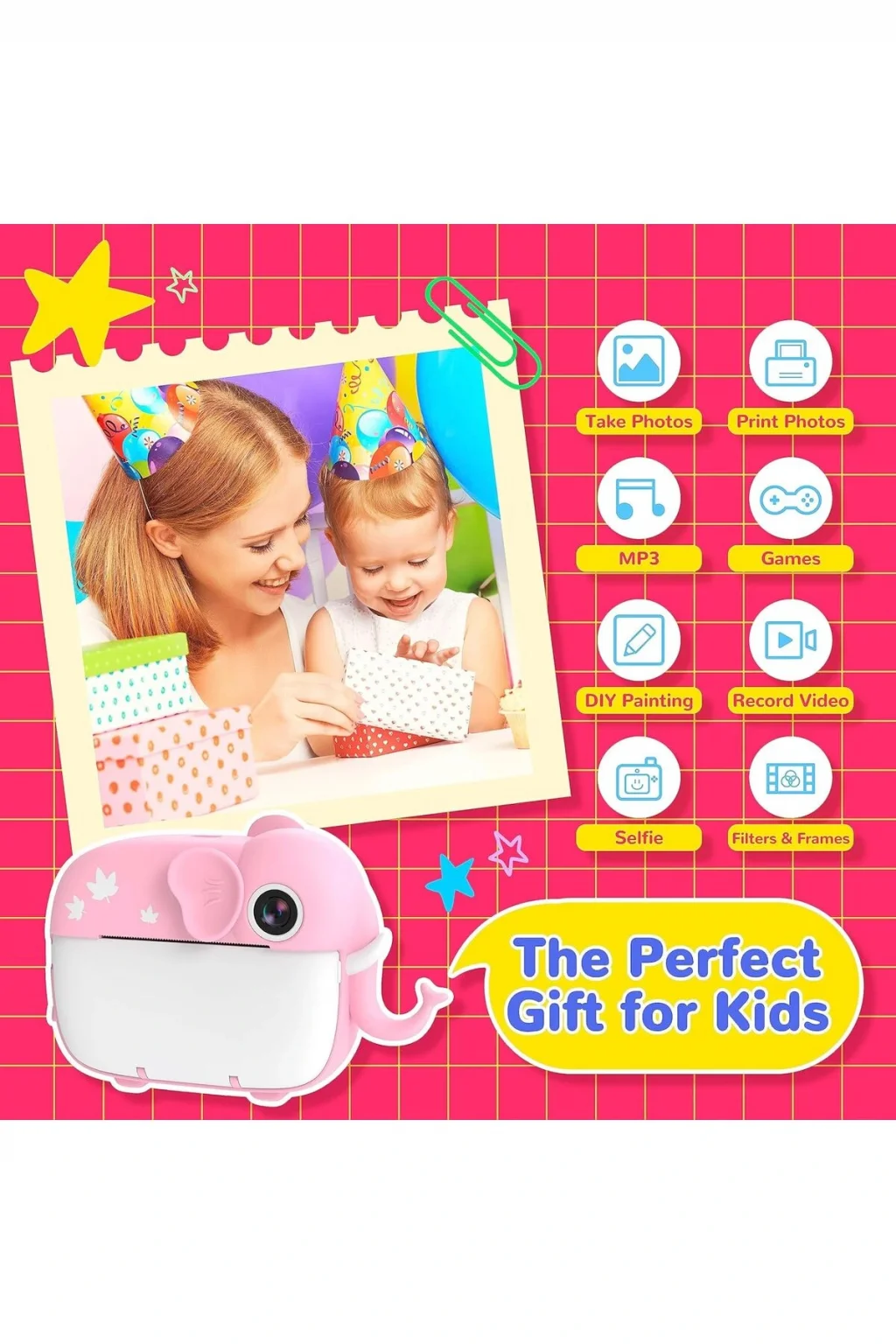 [Çocuklar için Eğlenceli Hediye] TIATUA çocuklar için anında baskı kamerası, fotoğraf çekme ve yazdırma, video kaydetme, fotoğraf DIY, oyunlar (Çocuğunuzun oyuna bağımlı olmasını önlemek için şifre ayarlarıyla), müzik gibi birden fazla işleve sahip sevimli bir fil silikon kılıfına sahiptir. vb. Çocuklarınızı eğlendirecek eğlenceli bir oyuncaktır. Gelin ve 3-12 yaş arası kız ve erkek çocuklarınız için doğum günü veya Noel hediyeleri hazırlayın? ; ?Kullanım Kolaylığı? Çocuklara yönelik anında baskı kameramız, güvenli sıfır mürekkepli baskı teknolojisini kullanır. Baskı kağıdını takmak için 3s ile çocuklar tek tıklamayla fotoğrafları kağıda basabilir ve 5 saniye içinde hızlı bir şekilde net siyah beyaz fotoğraf elde edebilir. ; ?Üstün Görüntü Kalitesi? Bu çocuk şipşak kamerası, çocukların gördüklerini net bir şekilde kaydetmek için 20 MP çift lens ve 2,4 inç HD ekranla donatılmıştır. Ve 1080P HD video çekimini, otomatik zamanlayıcıyı, sürekli çekimi, zamanlı çekimi ve 10x yakınlaştırmayı destekleyerek çocuklar için harika çocukluk anıları bırakıyor. ; [Uzun Pil Ömrü] Çocuk baskı kamerası, tek şarjla 4 saat sürekli çekimi destekleyebilen dahili bir 1000mAh pile sahiptir; ayrıca otomatik kapanma, otomatik ekran kapanma ve düşük pil koruması özelliklerine sahiptir. Kart yuvasına önceden takılan ekstra 32 GB SD, binlerce fotoğraf ve yüzlerce videoyu saklamanıza olanak tanır. ;