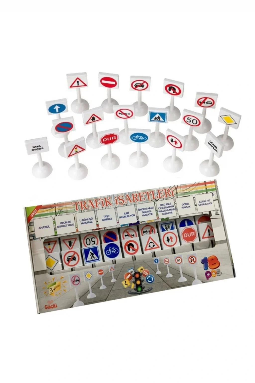 Trafik İşaretleriEn Önemli 18 Trafik İşaret Sembolü ve AçıklamasıÇocukların Eğlenirken Öğrenmelerini SağlarÇocuk Sağlığına Uygun Hammadde ve BoyaYaş Grubu : 3+ YaşBarkodu: 8695593793457Item No : 3457-167Kutu Ölçüleri : 31,8 x 23,8 x 5,3 cm.