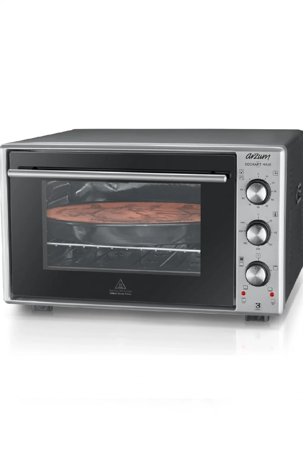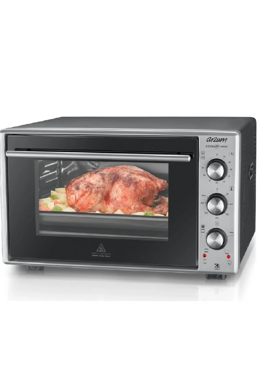 Arzum mini fırın değişik pişirme seçeneğini bir arada sunar.; Arzum mini fırın turba fan özelliği bulunur.; Arzum cookart maxi modelin emaye kaplı fırın tepsileri vardır.; Turbo mini fırın 1600W gücünde çalışır.; 50 LT fırın iç aydınlatma özelliği bulunur.; Elektrikli mini fırın ızgara gücü 2x800 Watt’tır.; Fanlı mini fırın modelinin iç kapasitesi 50L’dir.; Set üstü ocaklar için uyumlu set üstü mini fırın iç gövdesi emayedir.; Izgaralı mini fırın 15.2 kg ağırlığındadır.; Çift camlı mini fırın ısı ve enerji tasarrufu sağlayan çift cam tasarımına sahiptir.; İnox mini fırın zaman ayarı bulunur.; Çift tepsili mini fırın pop-up düğmesi ile çalışır.; İç aydınlatmalı mini fırın ışığı sayesinde besinlerin piştiğini kolayca takip edersiniz.; Büyük mini fırın ekonomik şekilde çalışır.; Termostatlı mini fırın maksimum verim sağlar.;