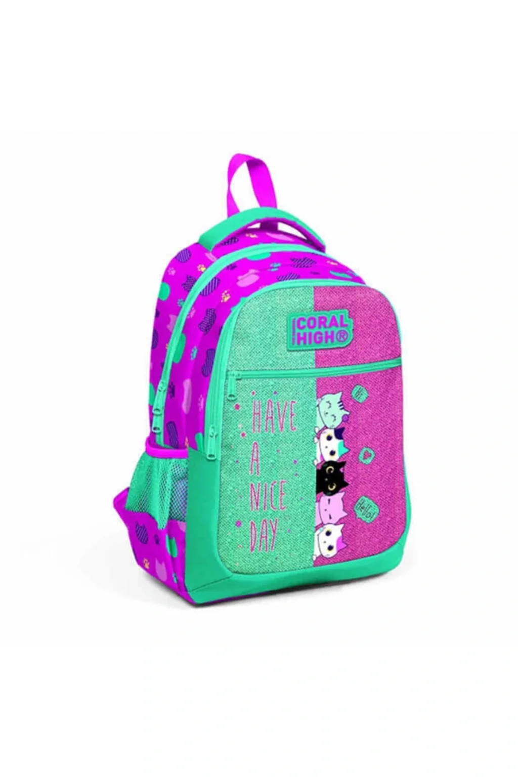 Coral High Sevimli Kediler Okul Çantası ile okula gitmek artık daha eğlenceli! üç farklı bölmeden, su geçirmeyen, benzersiz tasarım ve canlı renklerden oluşan bu havalı çanta ile eşyalarını rahatça taşıyabilirsin! Her iki yanında bulunan mataranı koyabileceğin kullanışlı bir lastikli file cep, konfor ve destek sağlayan süngerli sırt paneli, dayanıklı omuz askısı ve ayarlanabilir kayış, kaliteli malzeme ve geniş iç hacim özelliklerine sahip olan bu çanta ile bütün gözler senin üzerinde! Birbirinden güzel özellikleri ile öne çıkan bu okul çantası, okulda kullanım veya günlük kullanım için uygundur. ; ürünü nemli bir bezle temizleyiniz, çamaşır makinesinde veya elde güçlü kimyevi temizlik maddeleri ile yıkamayınız. ; ürün ölçüsü: 16 x 29 x 40 cm ürün ağırlığı: 0,560 kg;