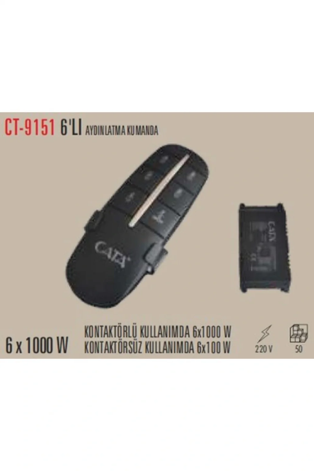 CATA CT 9151 6X1000 W 6 Lı Aydınlatma Kumandası CATA CT-9151 Aydınlatma Kumandası CATA CT-9151, geniş aydınlatma sistemlerinin kontrolünü sağlamak için tasarlanmış bir kumandadır.; Kontaktörlü ve kontaktörsüz olarak kullanılabilen bu kumanda, kullanıcıya geniş bir güç aralığında esneklik sunar.; Teknik Özellikler: Marka: CATA; Model: CT-9151; Ürün Tipi: Aydınlatma Kumandası; Kontaktörlü Güç: 6x1000W; Kontaktörsüz Güç: 6x100W; Gerilim: 220-240V; Frekans: 50-60Hz; Koruma Sınıfı: IP20-Class ll; Çalışma Sıcaklığı: -10°C / +40°C; Özellikler ve Avantajlar: Geniş Güç Aralığı: Hem kontaktörlü hem de kontaktörsüz kullanım için geniş bir güç aralığını destekler.; Esnek Kontrol Seçenekleri: Aydınlatma sistemlerini istenilen şekilde kontrol etme imkanı sunar.; Kompakt Tasarım: Kolay montaj ve kullanım için kompakt bir tasarıma sahiptir.; Güvenilir Performans: Yüksek kaliteli malzemelerden üretilmiş, uzun ömürlü ve güvenilir bir kumandadır.; Geniş Uygulama Alanı: Evlerden iş yerlerine kadar birçok alanda kullanılabilir.; CATA CT-9151 Aydınlatma Kumandası, geniş güç aralığı ve esnek kontrol seçenekleriyle aydınlatma sistemlerini etkili bir şekilde yönetmek için ideal bir çözümdür CATA LED ürünlerini kullanarak daha fazla enerji tasarrufu sağlayabilirsiniz DİKKAT:LED Armatürlere direkt olarak bakmak gözlere zarar verebilir.; Marka CATA Model CT-9151 Ürün Tipi Aydınlatma Kumandası Kontaktörlü 6x1000W Kontaktörsüz 6x100W Gerilim 220-240V Frekans 50-60Hz Koruma Sınıfı IP20-Class ll Çalışma Sıcaklığı -10°C / +40°C