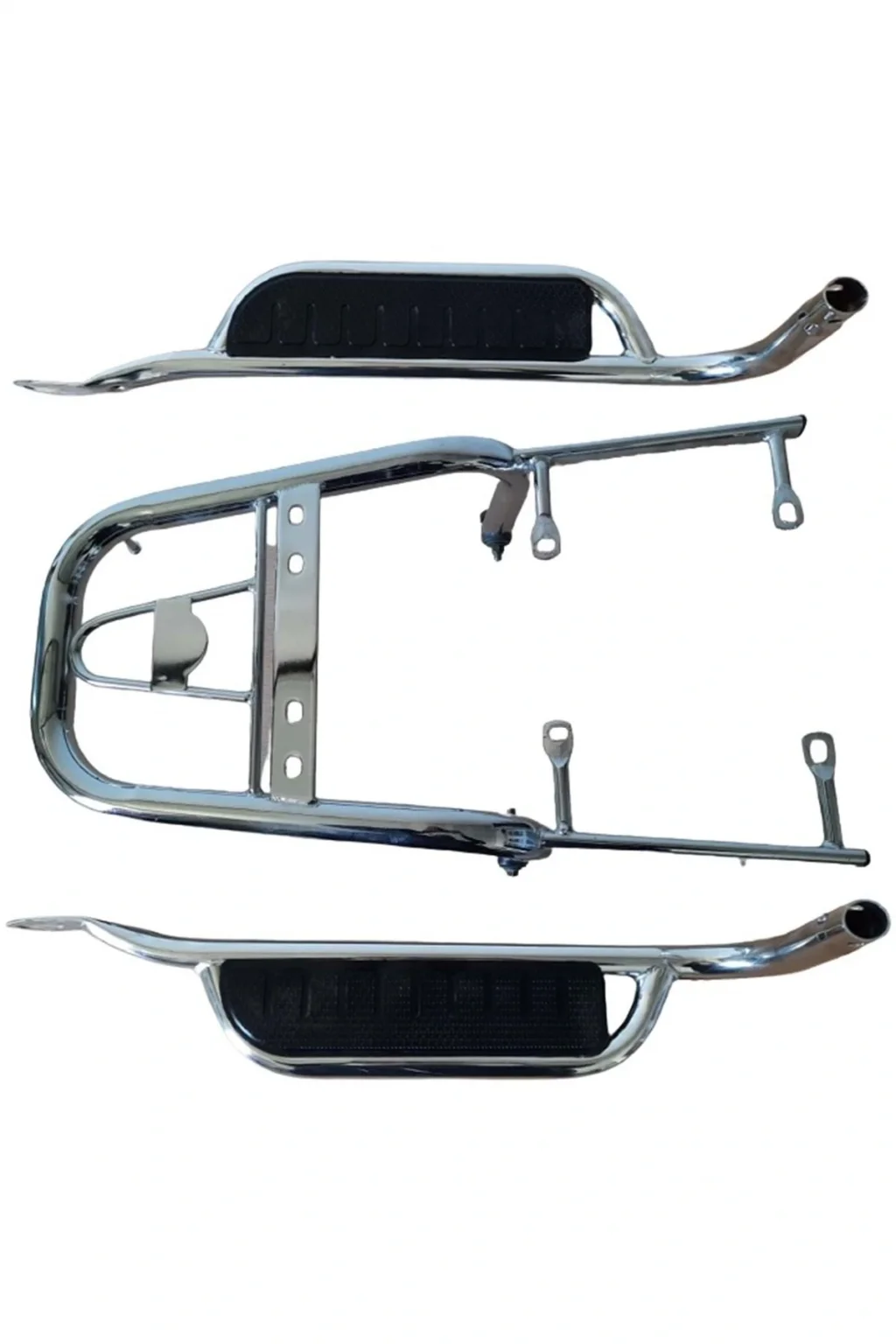 Motosikletinizin güvenliğini artırmak için tasarlanmış, dayanıklı çelik malzemeden üretilmiş koruma demiri ve takoz seti; Kolay montaj imkanı sunan bu ürün, motosikletinizin yan korkuluk ve basamak ihtiyacını karşılar; Dayanıklılığı ile öne çıkan çelik yapısı sayesinde uzun süreli kullanım için idealdir; Motosikletinizin estetiğini bozmadan, şık ve işlevsel bir görünüm sağlar;