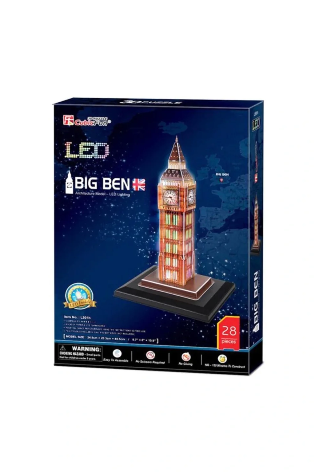 Kol Saati Cubicfun 3D 28 Parça Puzzle Big Ben Saat Kulesi - İngiltere(Led Işıklı)
