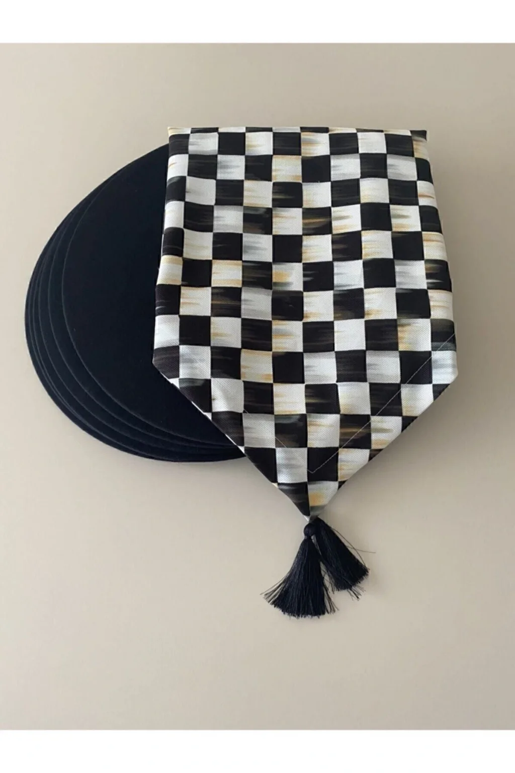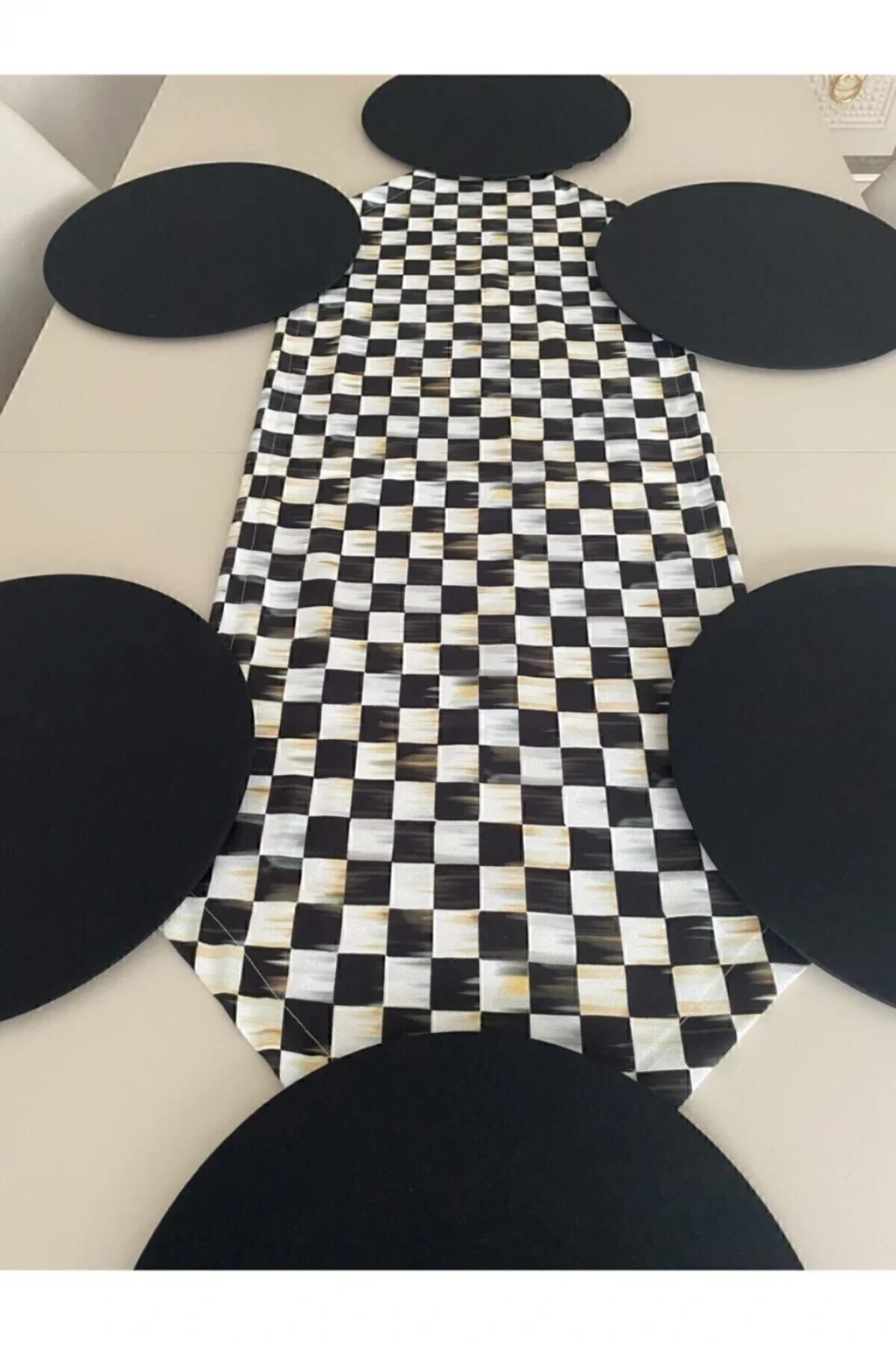 Ürün içeriği: 1 adet runner (runnerlar digital baskılı kumaştır. ; 30 derecede makinede yıkanabilir.Tersten ütülenmesi gerekmektedir.) 6 adet supla ( 35 cm çapında 3 mm kalınlığında mdf dir. ; Supla kılıfları 1.Sınıf dokuma kumaş ve lastiklidir. ; Istenildiği zaman çıkartılıp yıkanabilir ve tekrar takılabilir. ; Runner kumaşı su geçirir, leke tutmaz ve yıkanabilir supla ise duck keten kumaş su geçirmez leke tutmaz ve yıkanabilen kumaşlardır.;