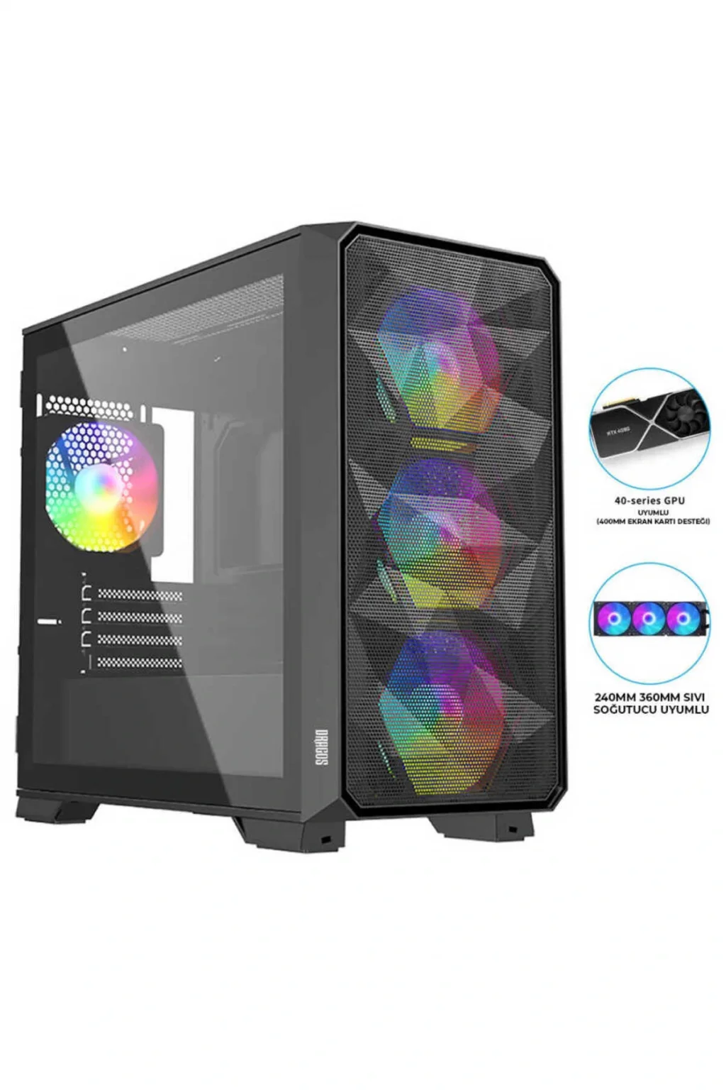 Genel Ürün Diamond 4x ARGB Fan USB 3.0 600W 80+ Plus Mesh Tempered Glass mATX Oyuncu Bilgisayar Kasası