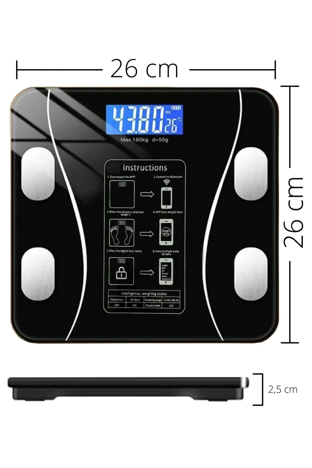 Vücut Yağ Analizi Yağ Ölçer Kare Dijital Baskül Tartı Pilli Bluetoothlu