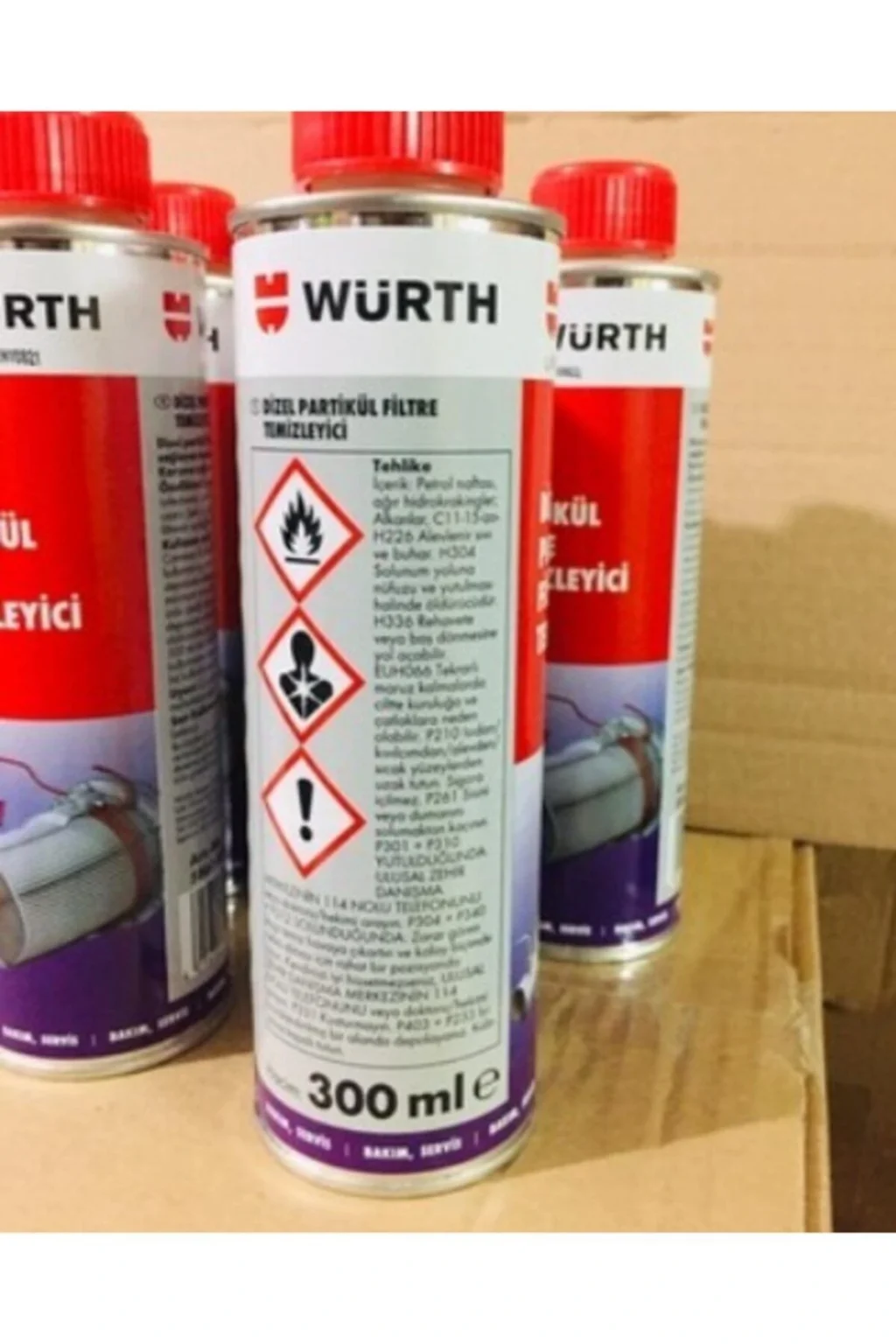 Würth dizel partikül filtre temizleyici ( depoya atılır ) 300 ml Dizel partikül filtrelerindeki karbon ve kül kalıntılarının giderilmesi için temizlik maddesi. ; Partikül filtrelerinde biriken karbon kalıntılarını çözer ve temizler. ; Dizel partikül filtresini sökmeye gerek kalmadan temizlik sağlar. ; Yanıcı değildir. ; Kül ve metal içermeyen nötr formül. ; Kalıntısız buharlaşma. ; Kullanım alanları: Dizel partikül filtre temizleyici, kirlenmiş dizel partikül filtrelerinden kaynaklanan performans düşüşlerini ve arızaları gidermek için kullanılır. ; Temizlik işlemi sayesinde filtrenin yeniden tam kapasiteyle çalışması sağlanır. ; Bu ürünle aynı zamanda agr supabı da temizlenebilir. ; Kullanım şekli: Tüm dizel motorlar , common-Rail ve dpfli pompalı enjektörlerde kullanıma uygundur. ; Ürün içeriğini yakıt deposuna eklemeden deponun minimun yarısı dolu olmalıdır. ; Ardından ürün içeriği depoya eklenmeli ve ürün yakıt deposuna eklendikten sonra depo tam olarak doldurulmalıdır. ; Şehir için kullanımı yoğun olduğu durumlarda 3 ayda bir kullanılması önerilir;