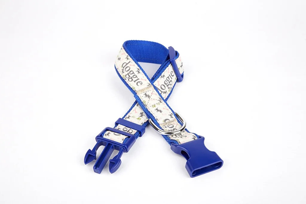 Doggie Desenli Süslü Dokuma Köpek Boyun Tasması 1,5 x 25-40 cm Mavi