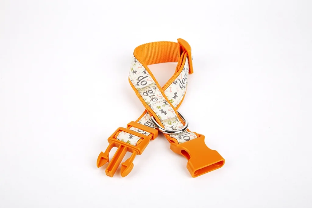Doggie Desenli Süslü Dokuma Köpek Boyun Tasması 1,5 x 25-40 cm Turuncu