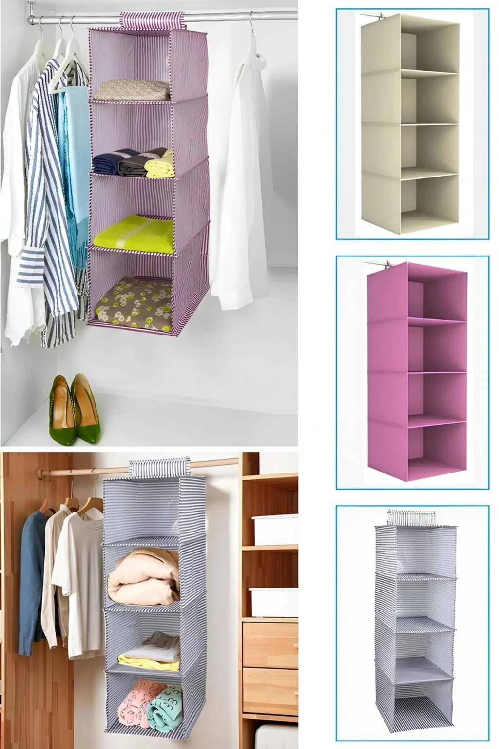 Dolap Içi Düzenleyici 4 Gözlü Bölmeli Katlanabilir Kumaş Elbise Giysi Tişört Rafı Organizer