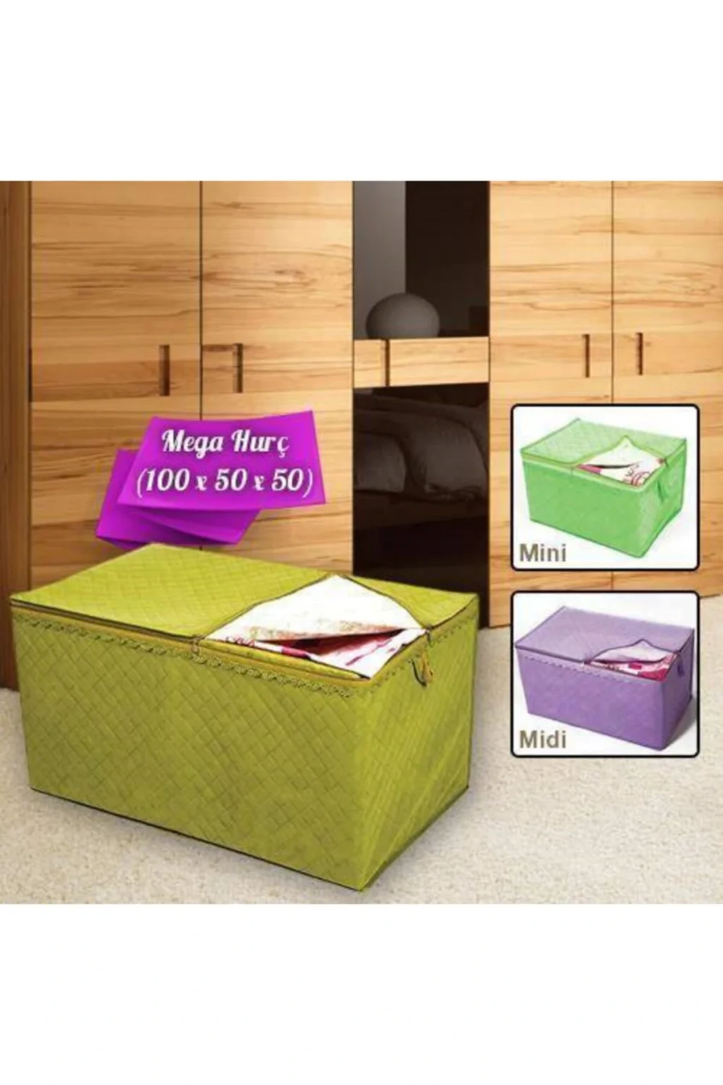 Pamuklu kumaş yapısı sayesinde, kıyafetlerinizi ve diğer eşyalarınızı doğal bir dokunuşla korur; Sandık tipi tasarımı ile geniş iç hacmi, düzenli bir şekilde saklama imkanı sunar; 3'lü set halinde gelen hurçlar, farklı boyutlardaki eşyalarınız için ideal saklama çözümleri sağlar; Pratik kullanım özelliği ile kolayca açılıp kapanabilen kapanış mekanizması, eşyalarınızın güvenliğini artırır; Asorti renk seçenekleriyle dolap içindeki renk uyumunu bozmadan estetik bir görünüm kazandırır;