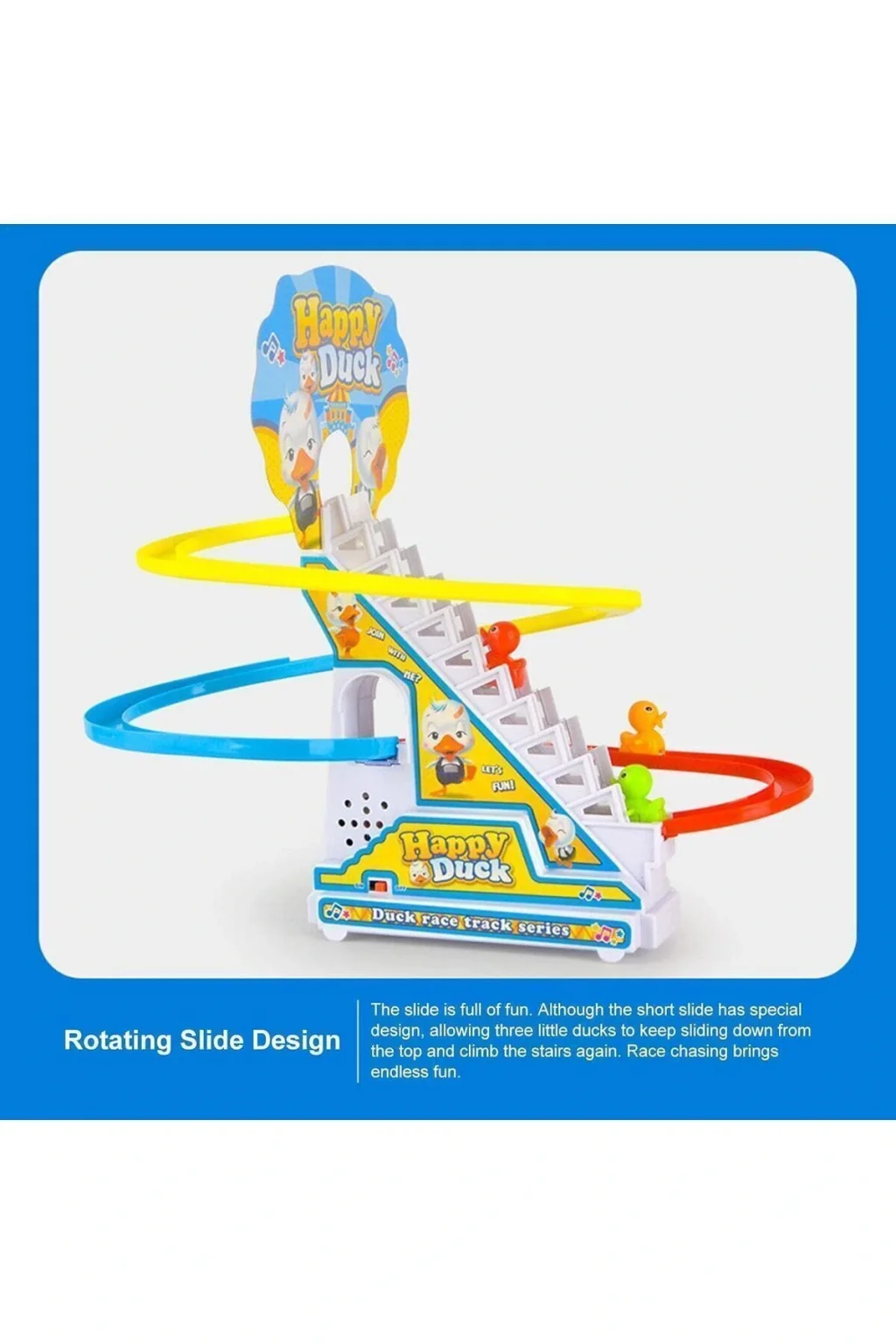 Güvenlik ve Dayanıklılık: Tüm parçalarda yuvarlak ve pürüzsüz kenarlı dayanıklı ABS malzemeleri benimseyen Küçük Ördekler Tırmanma Oyuncakları, çocukların oynaması için güvenli ve güvenilirdir. ; Benzersiz Tasarım: Duck Roller Coaster Oyuncak Seti, yanıp sönen LED ışıklar ve müzik (açma/kapama düğmesi ile) ile birlikte gelir. Sevimli küçük ördekler, ilginç parçalar ve neşeli müzikle birlikte merdivenlere çıkabilir ve pistleri kaydırabilir. ; Bebeğin Gelişimini Teşvik Edin: Duck Roller Coaster Toy, görsel algılarını geliştirmek, renkleri tanımak ve el-göz koordinasyonunu geliştirmek için ilginç şarkılara, neşeli müziklere ve çocuklara sahiptir. ; Kolay Kurulum: Küçük Ördekler Tırmanma Oyuncağı taşınabilirdir ve sökmeden sonra herhangi bir yere götürülebilir. Montaj basittir ve sırayla monte edildikten sonra çocuklar oynamaya başlayabilir. ; Mükemmel Hediye Seçimi: Duck Rollercoaster Oyuncak, yılbaşı hediyesi, doğum günü veya çocuk günü vb. başında çocuklar için mükemmel bir hediyedir. ;