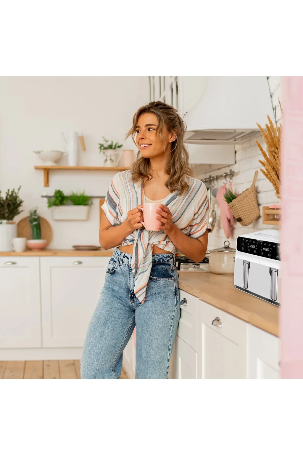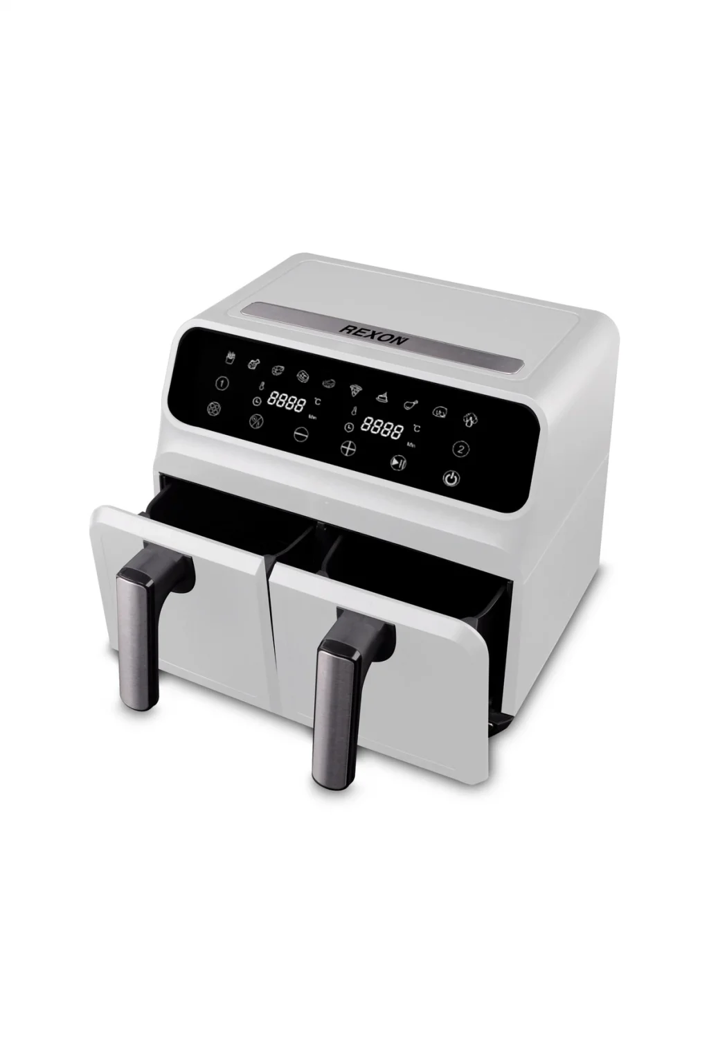 • 2 yemeği aynı anda 2 şekilde pişirmek için 2 bağımsızsepetli fritöz • 4'ü 1 arada çok yönlülük: Havada Kızartma, Kızartma,Yeniden Isıtma ve Kurutma. ; • Temizlemesi kolay sepetler ve bulaşık makinesindeyıkanabilir sebzelik tabakları. ; • 2 bağımsız 4.0L. ; bölgelerin kendi pişirme sepetleri,siklonik fanları ve hızlı ısıtıcıları vardır. ; • Okunması kolay ve ayarlanabilir ekran • Yapışmaz, güvenli raf • Güç 220-240V/1700W 100-127V/1700W • Kapasite: 8.0L (4L+4L) • Ürün Boyutu (mm): 378*364*319mm •Kutu Boyutu (mm): 415*400*352mm;
