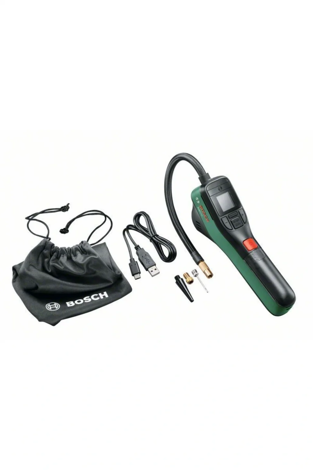 Gerçek zamanlı ölçüm ve otomatik durdurma işlevi ile 10,3 bara kadar şişirme · Lastikleri (araba, motosiklet, bisiklet), toplar ve daha küçük su sporları ekipmanlarını şişirmek için ideal · Her şey elinizin altında: çeşitli adaptörler alet tutamacında özenle saklanır · Sezgisel ve pratik: kullanımı kolay, ergonomik ve büyük ekranlı küçük tasarım · LED ışığı ile parlak bir şekilde aydınlatılan entegre pil ve USB-C® şarj · Küçük alet, büyük performans: EasyPump, Bosch'un 10,3 bar'a kadar tüm uygulamalar için sezgisel basınç pompasıdır.; · Ünitenin gerçek zamanlı ölçümü ve ön seçim işlevi, uygun ve hassas şişirme sonuçlarını destekler.; · Pompa, gün ışığında okunabilen net bir arayüze ve geniş bir ekrana sahiptir.; · Kompakt ve hafif tasarımı, yanınızda götürmek için ideal bir arkadaştır.; · Saklama bölmesinde özenle saklanan çeşitli adaptörler ile donatılmış olan EasyPump, her türden lastiği (örn.; Araba, bisiklet), topları (örn.; Futbol topları) ve hatta küçük su sporları ürünlerini şişirebilir.; Teknik Özellikler: Batarya voltajı: 3,6 VMaks.; Alan sayısı Ah: 3 AhAğırlık dahil batarya: 0,4 kgMaks.; Alan sayısı basınç: 10 çubuğuMaks.; Alan sayısı basınç: 150 psiMaks.; Alan sayısı basınç: 1,030 kPaMaks.; Alan sayısı çıktı hacmi: 10 l / dakHortum uzunluğu: 0,2 mTakım boyutları (U x G x Y): 49 x 215 x 106 mm Paket İçeriği: Fransız valfTop iğneHacim adaptörüUSB kablosuTekstil çanta