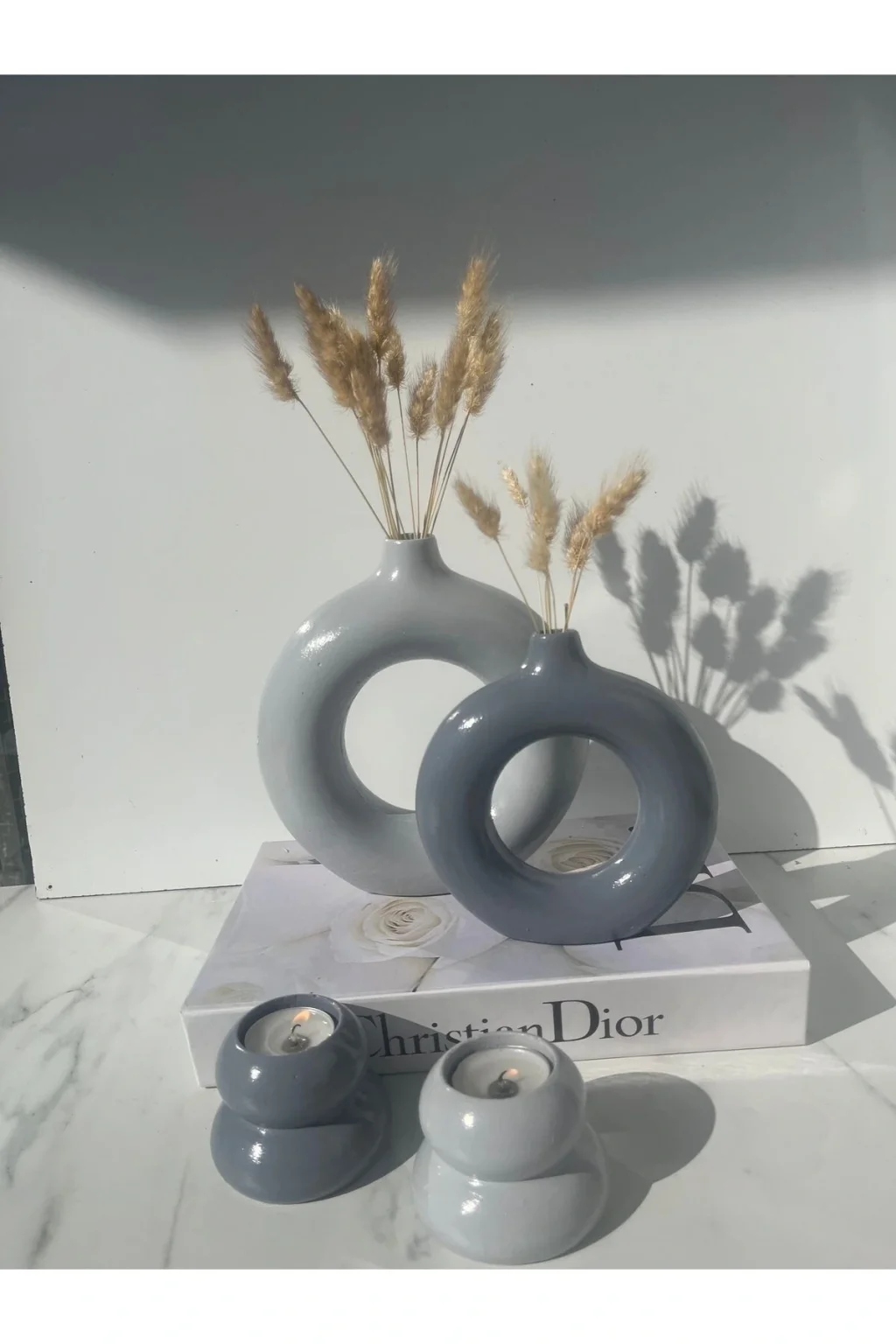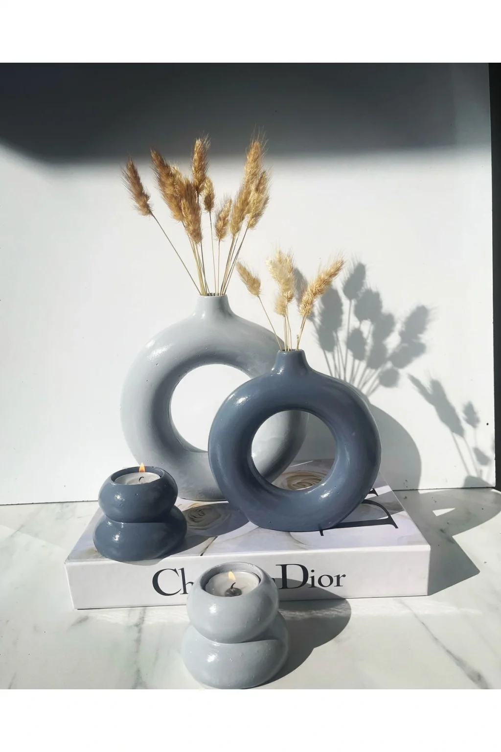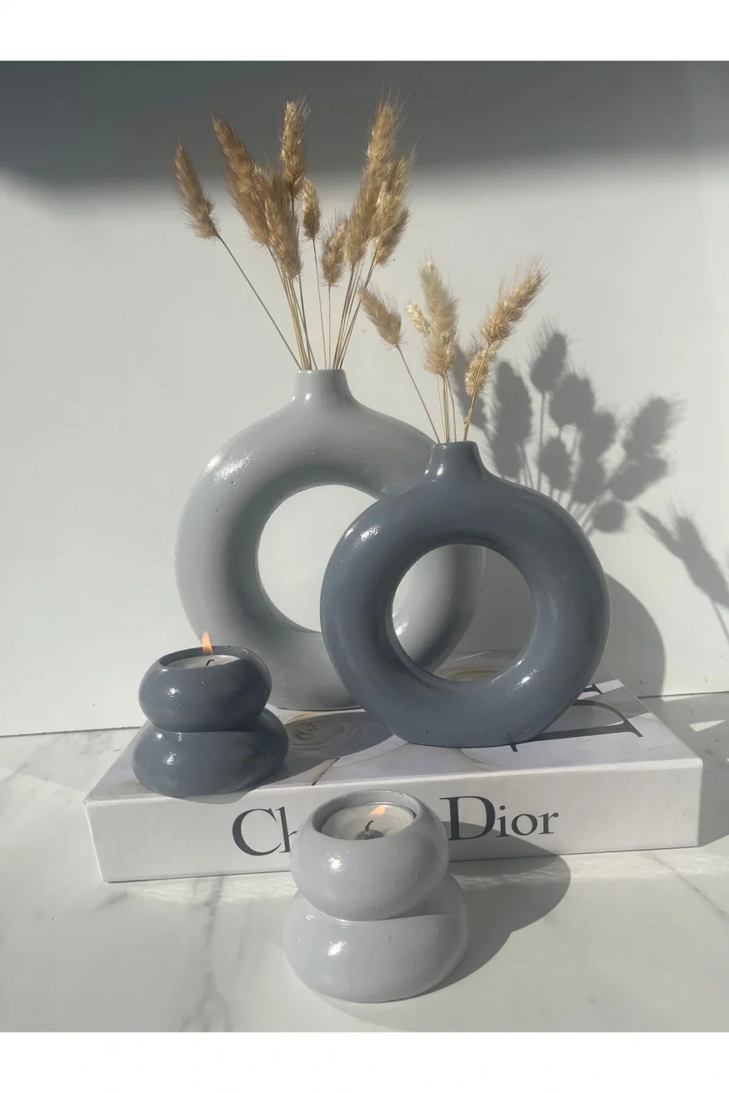 Bohem tarzıyla ev dekorasyonunuza sıcak ve doğal bir dokunuş ekleyen Ela; 2'li set, koyu gri ve açık gri renkleriyle mekanınıza modern bir hava katıyor; Beton materyali sayesinde dayanıklılığı ve uzun ömürlü kullanımı ile öne çıkan bu ürün, hem dekoratif hem de fonksiyonel bir aksesuar olarak dikkat çekiyor; Mumluklu tasarımı ile hem vazolar hem de mumlar için ideal bir ortam sunarak, evinizin atmosferini zenginleştiriyor;
