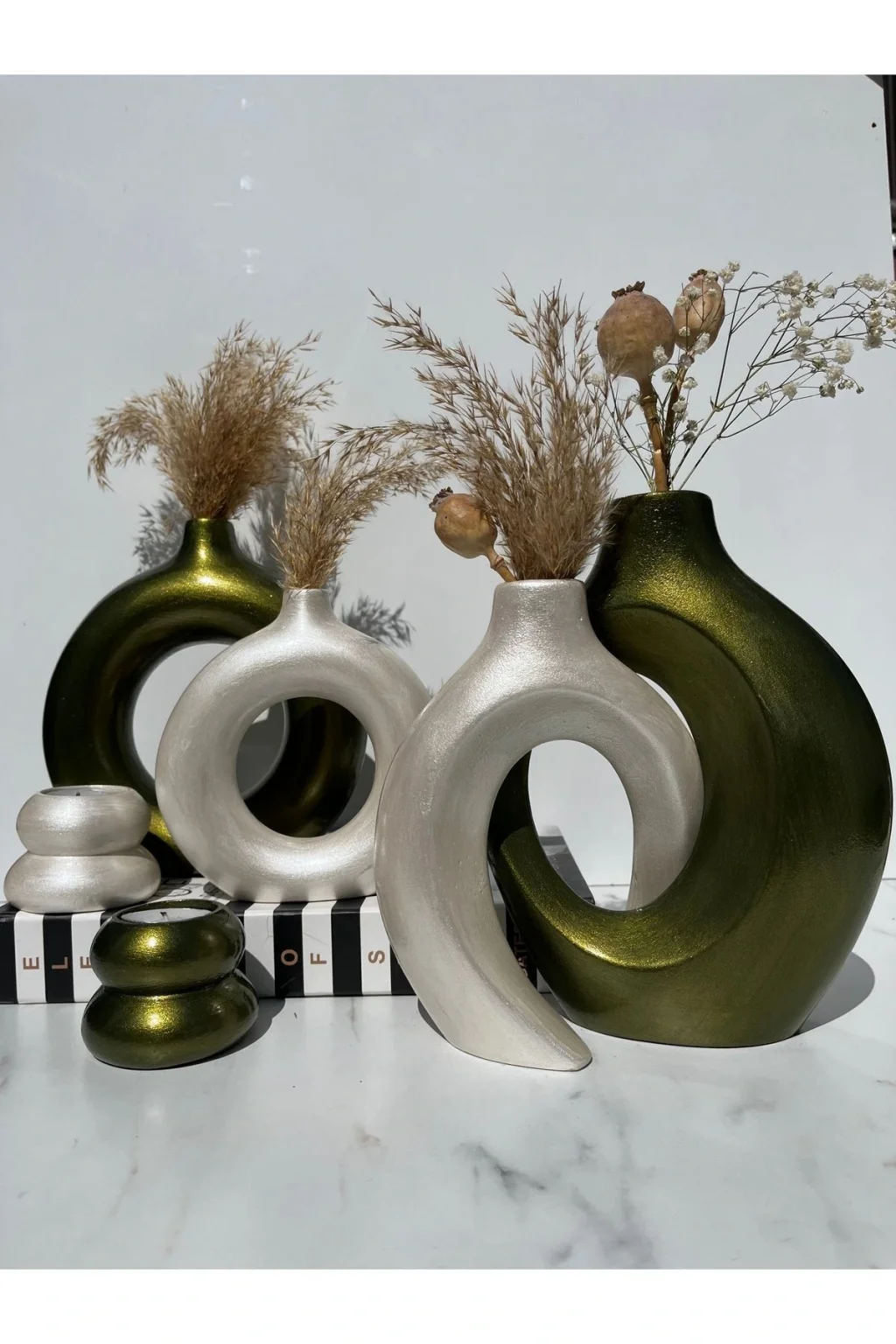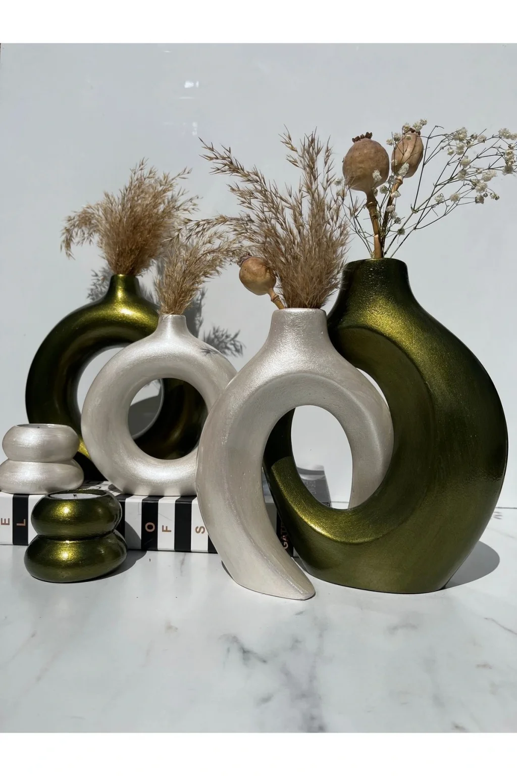 - Bohem tarzıyla ev dekorasyonunuza sıcak ve doğal bir dokunuş ekleyen Ela-Home sevgili vazo seti, beton malzemesiyle dayanıklılığı ve şıklığı bir arada sunar; - Betonun doğal dokusu ve dokusuyla dikkat çeken bu vazo seti, hem modern hem de klasik dekorasyon stilleriyle uyum sağlar; - Dekoratif halka mumlukları sayesinde, mumların estetik bir şekilde sergilenmesine olanak tanır ve mekanınıza romantik bir atmosfer katar; - El yapımı ve özgün tasarımıyla her bir parça, evinizin atmosferini zenginleştirirken aynı zamanda kişisel bir dokunuş katmanızı sağlar;