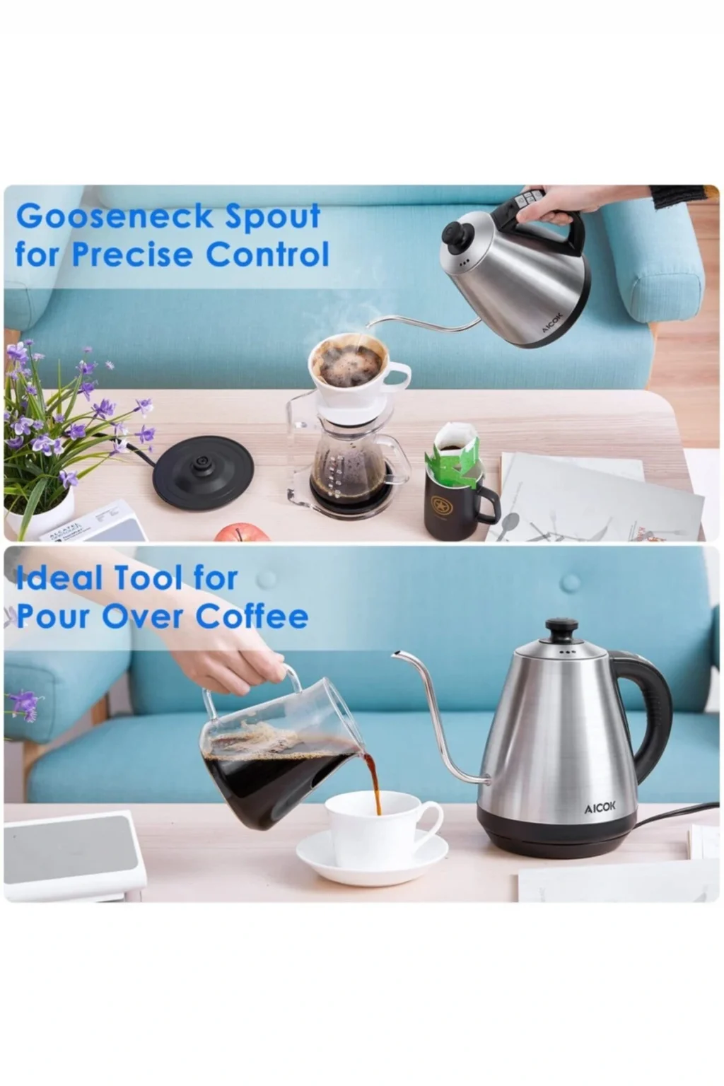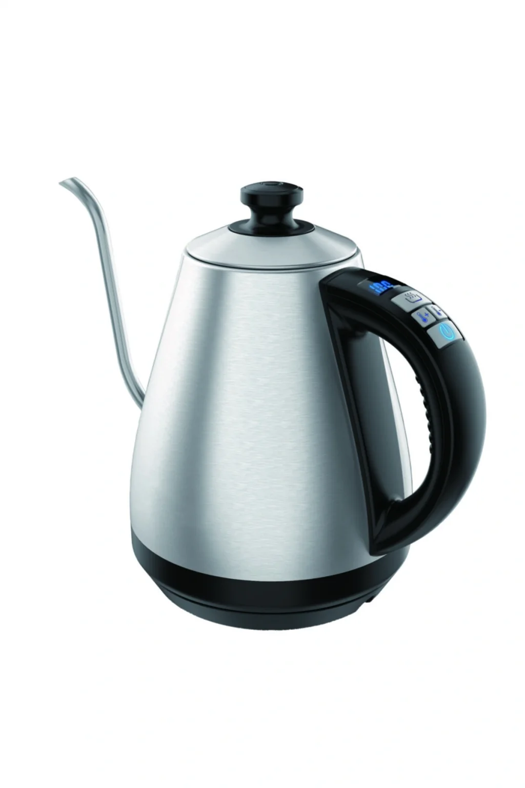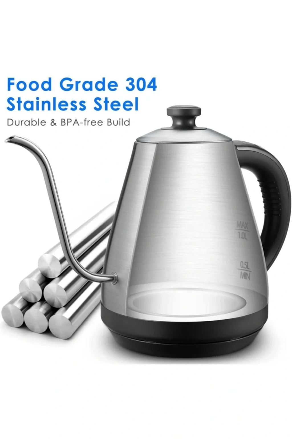 Elektrikli Kahve Demleme Su Isıtıcı Gooseneck Drip Kettle Escobarista Elektri?kli? Kettle - Di?ji?tal Isı Göstergeli Min / Maks kapasite 0.5L / 1.0 40 ° C'den 100 ° C'ye kadar sıcaklık kontrolü. ; °F (Fahrenheit) modu ve °C (Celsius) mod. ; Paslanmaz çelik gövde. ; Paslanmaz çelik ibrik ucu. ; Sabit kablolu güç tablası. ; Led ekran. ; Ürünü kullanmadan önce sirkeli su ile kaynatarak ve bol sudan geçirerek temizleyebilirsiniz.;