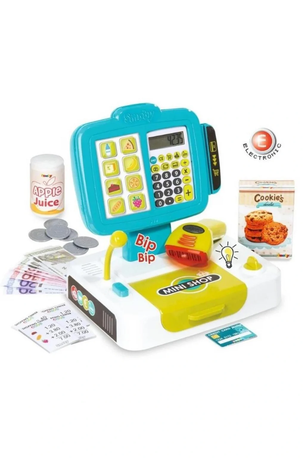Smoby Mini Yazar Kasa Mavi 350104 (Small Cash Register) Smoby'den çok şirin Mini Yazar Kasa. Çocuklarınız bu set sayesinde gerçek bir alışveriş yaparken lazım olan yazarkasa ekipmanlarına sahip olacak.Yazarkasa gerçek bir hesap makinesi fonksiyonlarıyla donatılmıştır.Aynı zamanda gerçek okuma sesine ve ışığına sahip bir barkod okuyucusu bulunmaktadır. Üzerinde fiyat indirimleri gibi bilgilendirmeler yapılabilmesi için bir mikrofunu da mevcuttur.(işlevsizdir.)Paraları koyabilmek için ise kapaklı özel bölmesi mevcuttur.Set içerisinde: Madeni para, kağıt para,3 boş gıda kutusu ve kredi kartı ekipmanları çıkmaktadır.1 x LR54 pil dahildir.Fransa'da yüksek kaliteli malzemeden üretilmektedir.3 yaş üstü çocuklar için uygundur.