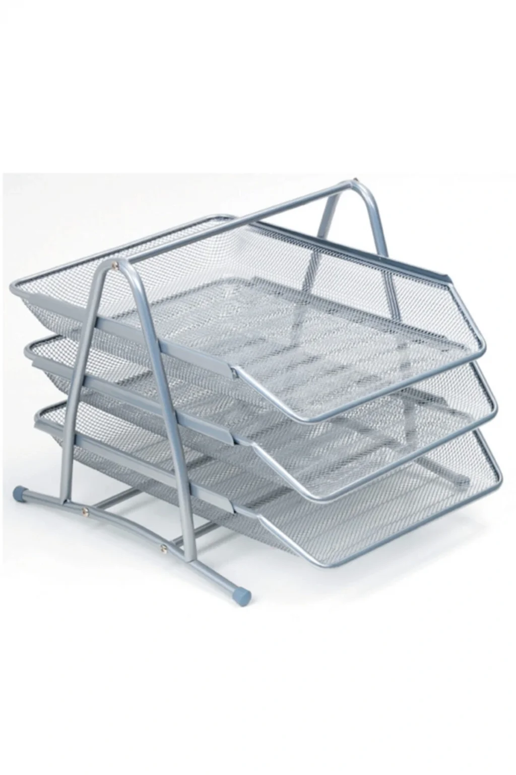Genel Ürün Evrak Rafı Metal Perforeli 3 Lü Gümüş 9181