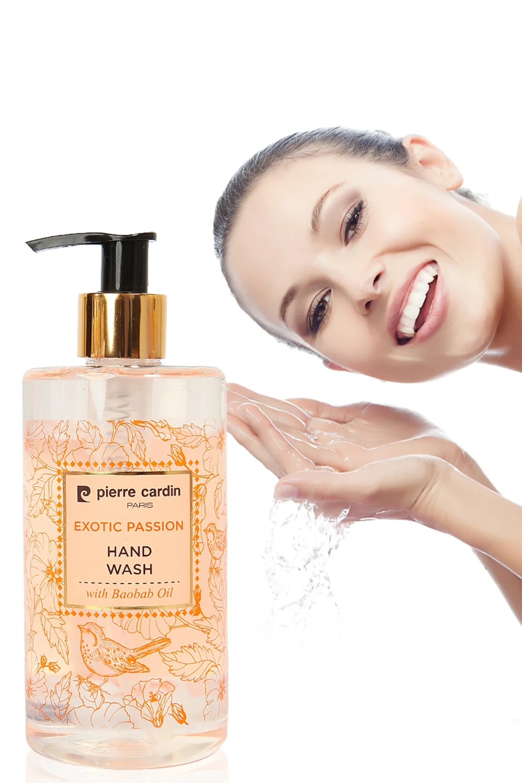Pierre Cardin Cosmetic ile egzotik tutkunun büyüsü ellerinizi sarsın.; Pierre Cardin Kozmetik ve Kişisel Bakım ürünü olan Exotic Passi on Sıvı El Sabununun, Gliserin, E vitamini ve Baobab yağlı içeriği sayes inde, elleriniz her daim nemli ve krem sürmüşcesine yumuşacık olacak.; Sıvı sabun tercihiniz ile el yıkamayı keyfe dönüştürmeye davetlisiniz.