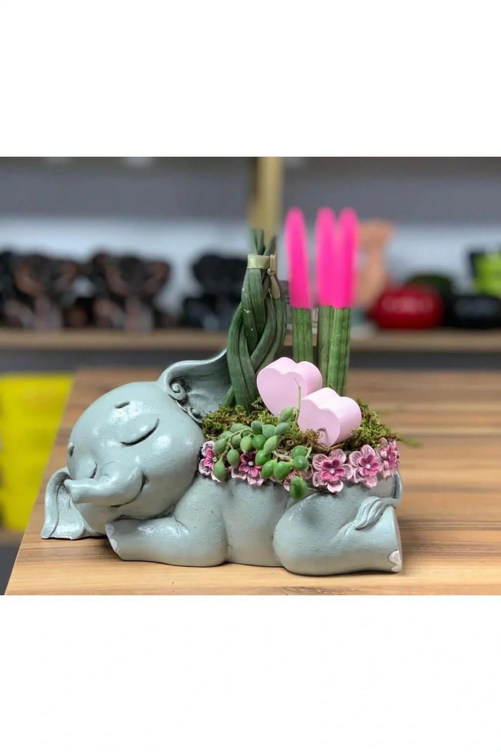 Tek parça halinde gelen bu modern fil saksılık biblo, minimalist ve şık bir dekorasyon parçası olarak evinizin her köşesine kolayca uyum sağlar; Beton malzemesi sayesinde dayanıklı ve uzun ömürlü kullanım sunar; aynı zamanda modern tasarımıyla mekanınıza çağdaş bir hava katar; Tek parça halinde gelen bu ürün, montaj gerektirmeyen pratik bir kullanım sunar ve hızlıca sergilenmeye hazır hale gelir;
