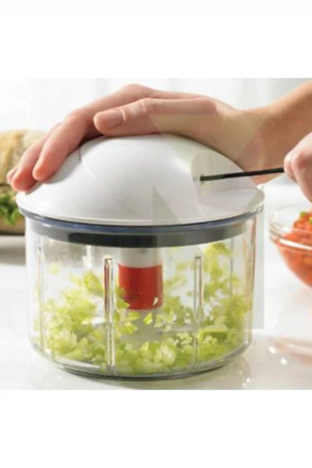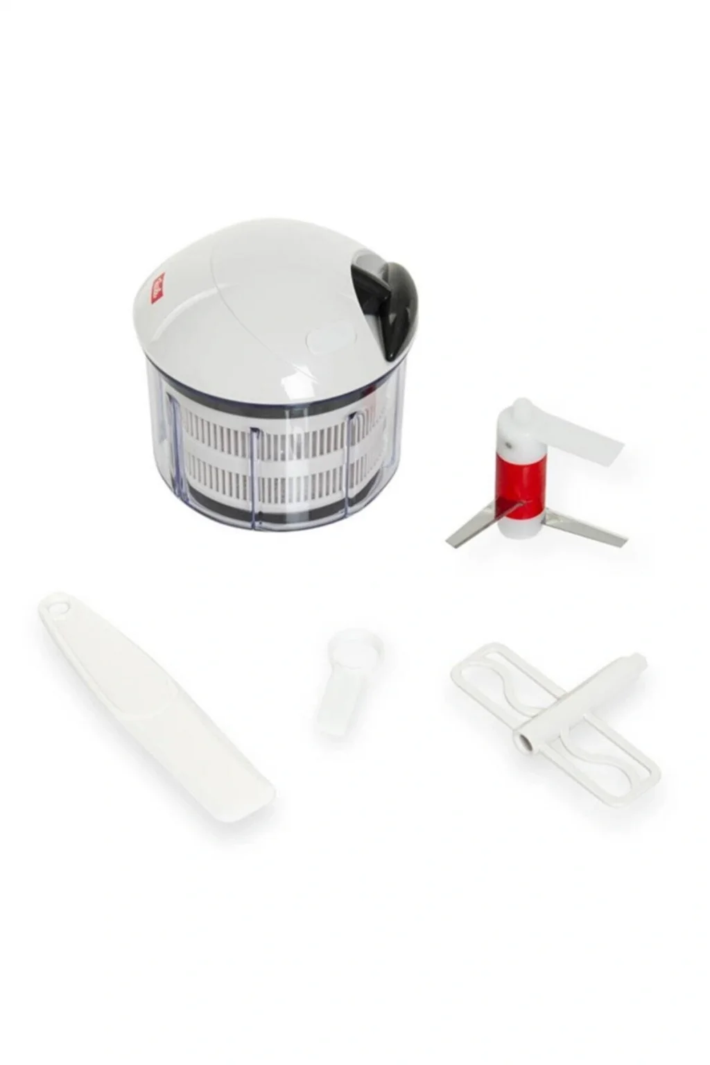 • Ölçü: 12x12x12 cm • Renk: Şeffaf • Malzeme: Plastik • Saklar, doğrar, karıştırır, kurutur. • Çok amaçlı manuel doğrayıcı