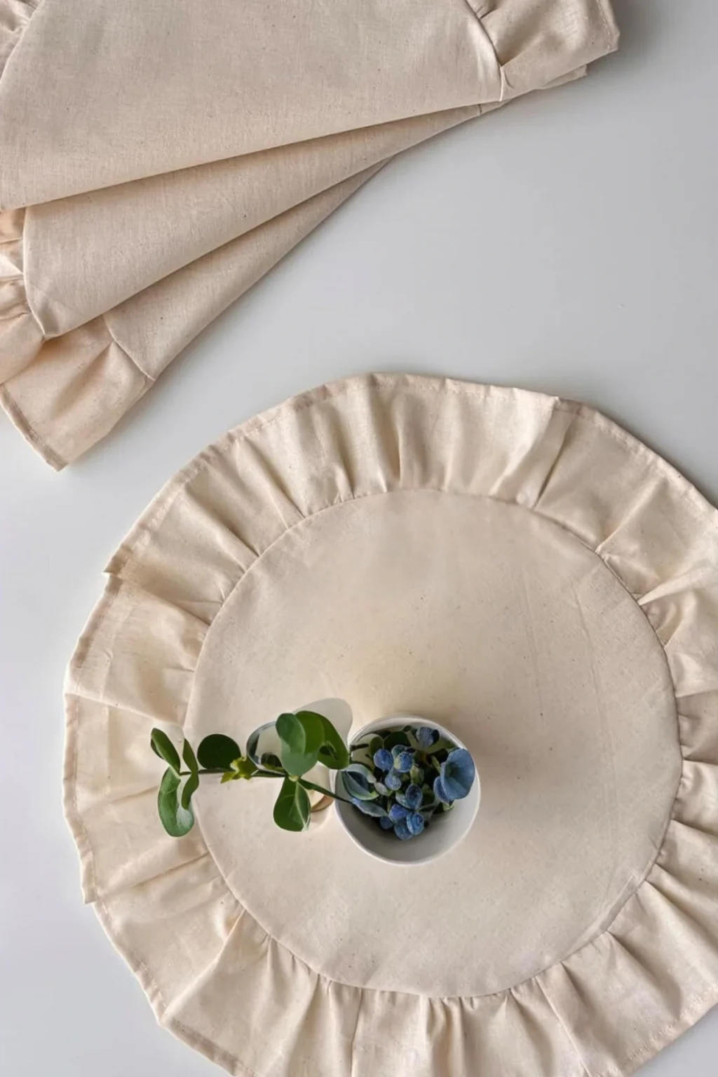 Genel Ürün Fırfırlı Keten Amerikan Servisi Yuvarlak 6'lı 40x40