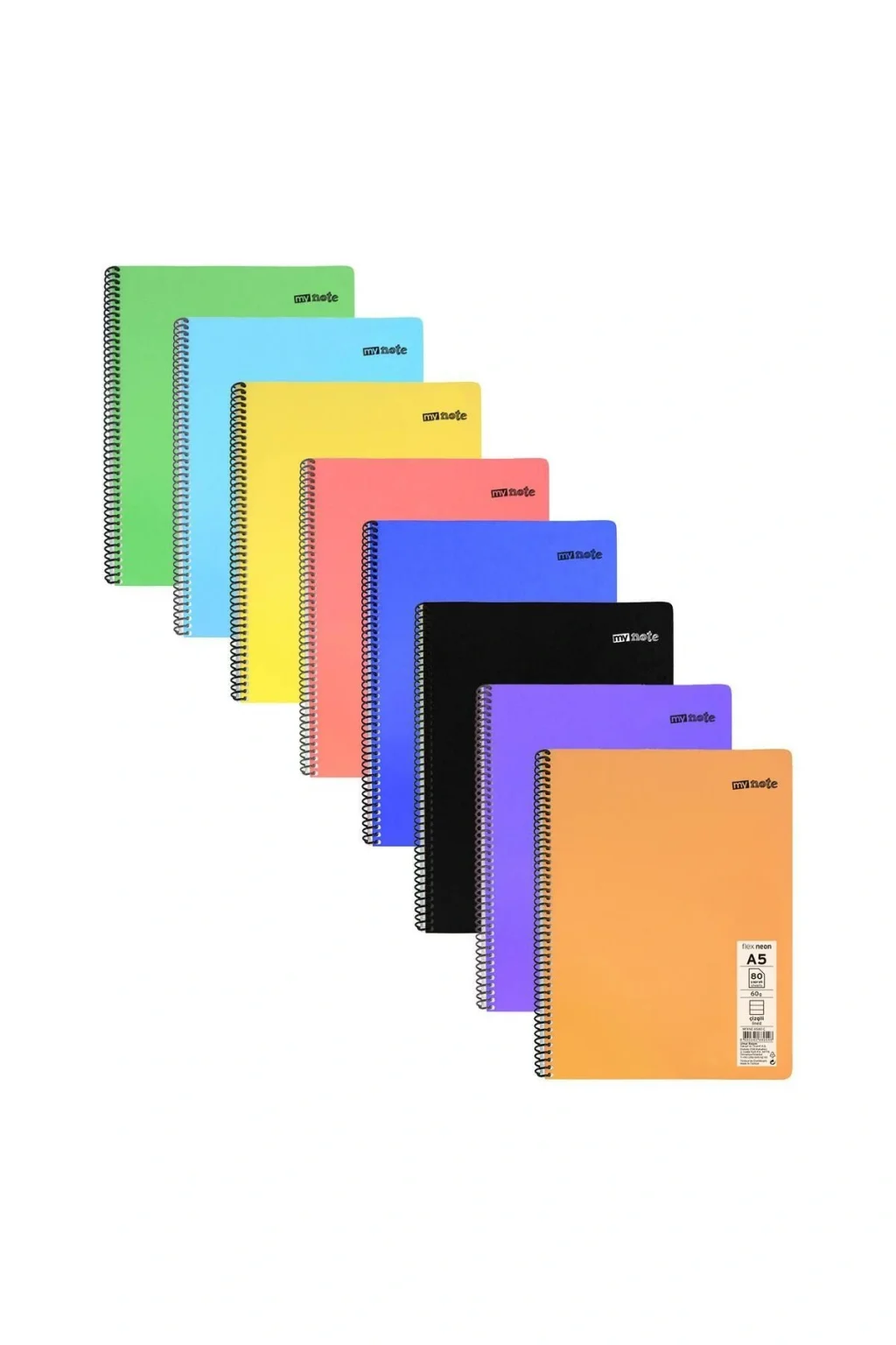 Flex Neon A5 (Küçük Boy) Defter 80 Yaprak 4 Kareli 4 Çizgili Defter Seti