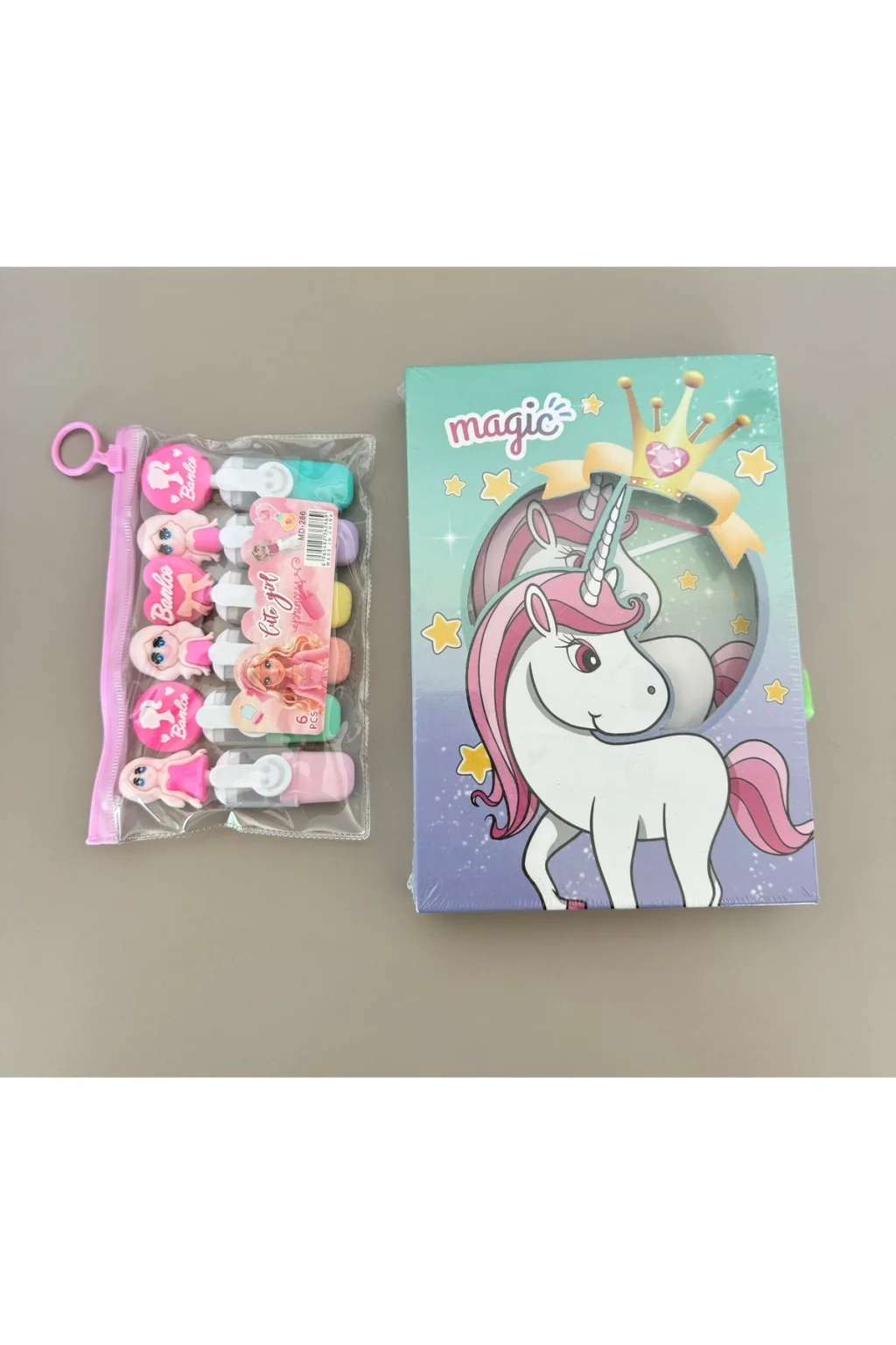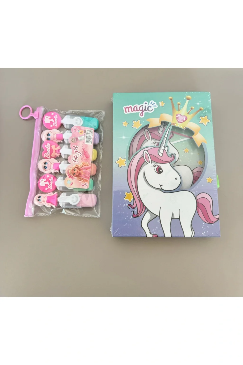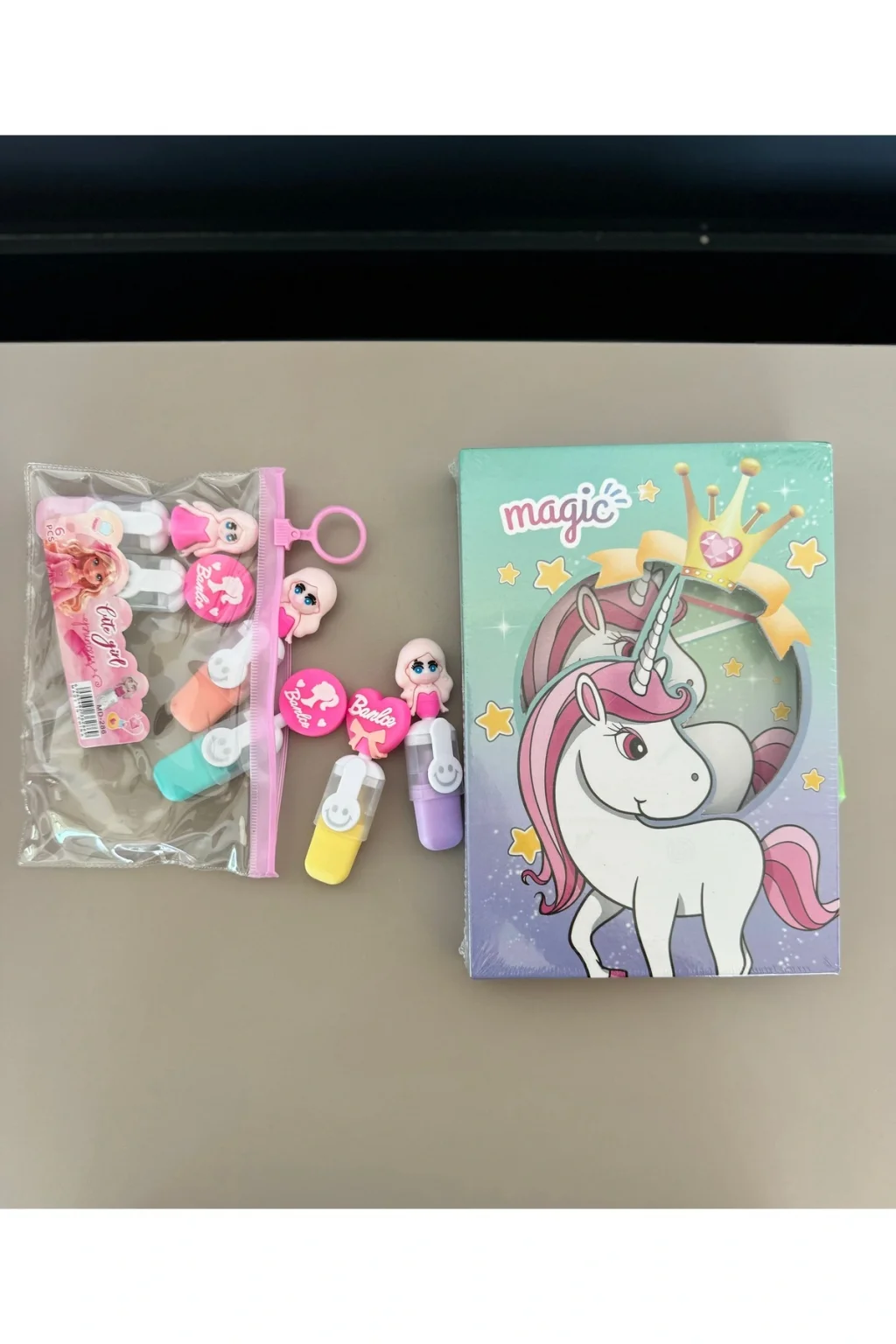 Genel Ürün fosforlu Barbie Kalem ve Magic Unicorn anı defteri Kilitlenebilir-SET KIZ ÇOCUK KIRTASİYE ÜRÜNLERİ