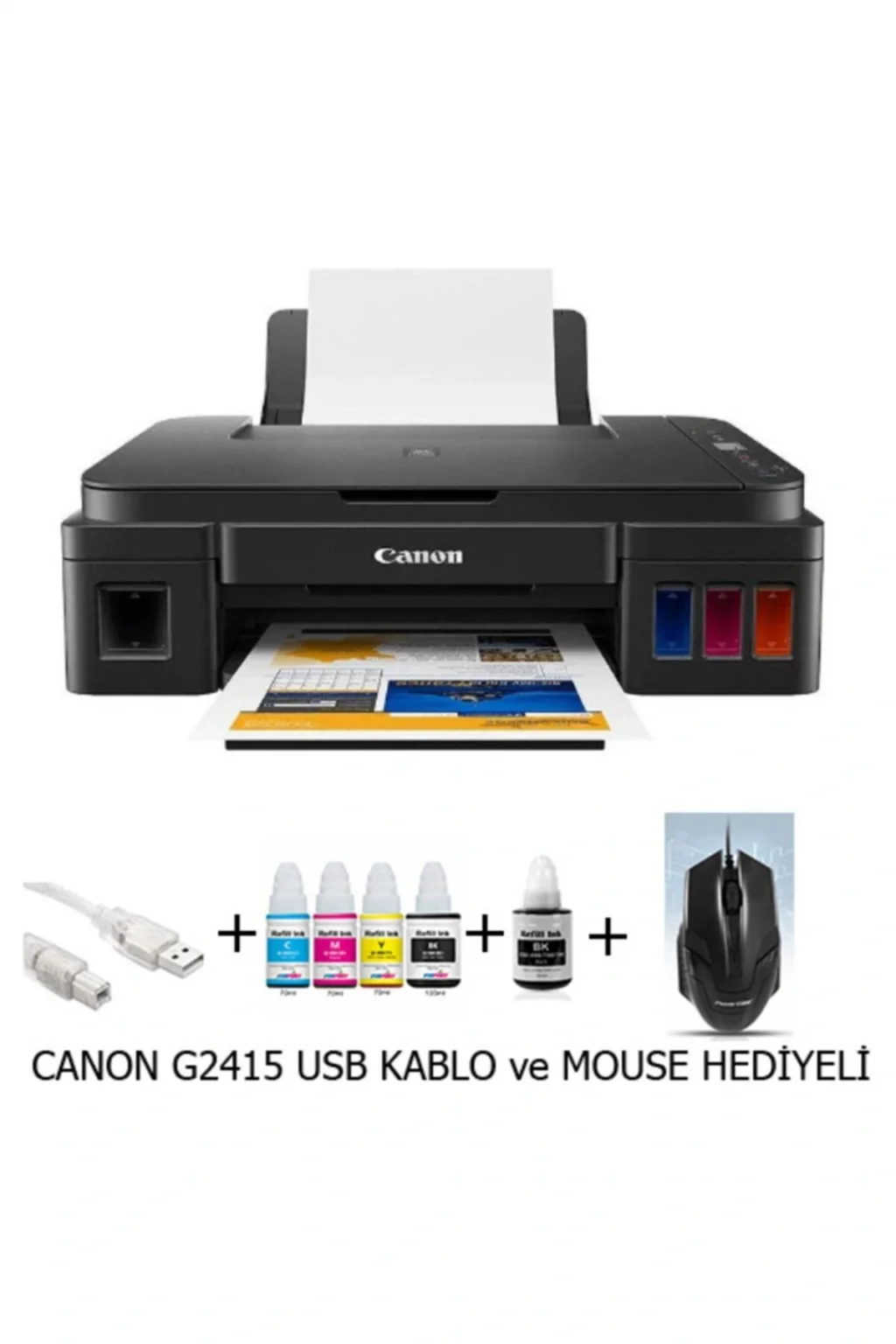 CANON G2415 REFILL INK MÜREKKEP TAKIMLI, SİYAH MÜREKKEP, USB KABLO VE MOUSE HEDİYELİ. Kullanım Tipi : Çok Fonksiyonlu ; Baskı Tekniği : Mürekkep Püskürtme ; Baskı Türü : Renkli ; Marka : Canon ; Baskı Çözünürlüğü : 4800x1200 ; Siyah Beyaz Baskı Hızı : 10 Sayfa / Dakika ; Tarayıcı : Var ; Faks : Yok ; Fotokopi : Var ; Çift Taraflı Baskı : Yok ; USB : Var ; Ethernet : Yok ; Mobil Baskı : Yok ; Wi-Fi : Yok ; Renkli Baskı Hızı : 5 Sayfa / Dakika ; Tarayıcı Çözünürlüğü : 600x1200 ;