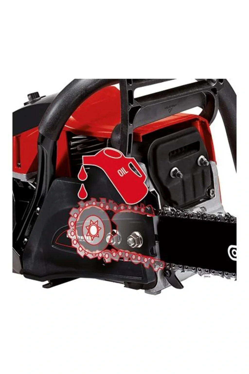 -OREGON kaliteli pala ve zincir -Kolay çalıştırma ( quick-start ) için otomatik jikle ve ateşleme -Dijital ateşleme - stabil motor -Titreşim önleyici tutamak sayesinde yorulmadan çalışma imkanı -Büyük metal pençe durdurma -Anında zincir freni ile geri tepme koruması -Otomatik zincir yağlama -Benzin / yağ karıştırma şişesi -Pala koruması Einhell benzinli ağaç testere GC-PC 2040 I keskinlik ve güvenlik içeren kullanıcı dostu bir performansa sahiptir.; Einhell benzinli ağaç testere ile OREGON kalitesinde pala ve zincirin kaliteli kombinasyonu, bahçıvana güçlü ve güvenilir bir çalışma imkanı sağlar.; İster bahçede, ister avluda veya atölyede: benzinli ağaç testere, basit ve kaba ahşap işleri için çok yönlüdür.; Her iki tarafa monte edilmiş krank miline sahip hava soğutmalı iki zamanlı motor, güçlü bir çalışma imkanı sağlar.; Aynı zamanda zor çalışılan ağaçlarda da ustalaşabilir: ince dallar ve dalların yanı sıra kare kereste, iş parçaları ve yakacak odun için de uygundur.; Einhell benzinli ağaç testere, çeşitli teknik destek işlevleri sayesinde kullanımı kolay ve güvenlidir.; Titreşim önleyici vücuttaki stresi azaltır ve kullanıcının gücünden tasarruf sağlar.; Soğuk çalıştırma yardımcıları astar ve otomatik jikle, kolay bir çalıştırma imkanı sunar.; Dijital ateşleme sayesinde hızlı ve dinamik bir gaz kelebeği tepkisi ve dengeli bir motor çalışması garanti edilir.; Anında zincir frenli geri tepme koruması, zincir yakalayıcı ve büyük metal pençe durdurma hepsi güvenliği sağlar.; Bu, testere açıldığında hemen etkinleşir, böylece zincirin hemen durdurulması sağlanır.; Benzinli ağaç testere ayrıca bir zincir tutucu ile donatılmıştır, böylece zincirin atlama riski de en aza indirilir.; Otomatik zincir yağlama, zincire yeterli zincir yağı sağlar.; Sağlanan kılıç koruması, optimum depolama sağlar.